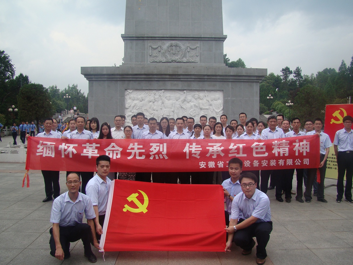 為隆重紀(jì)念中國(guó)共產(chǎn)黨成立96周年,喜迎黨的十九大,進(jìn)一步推進(jìn)“兩學(xué)一做”學(xué)習(xí)教育常態(tài)化制度化,深入開展“講政治、重規(guī)矩、作表率”專題教育,激勵(lì)廣大黨員堅(jiān)定理想信念,繼承和發(fā)揚(yáng)黨的光榮傳統(tǒng)和優(yōu)良作風(fēng)。7月7日,安徽安裝公司組織機(jī)關(guān)全體黨員赴金寨縣烈士紀(jì)念館開展“緬懷革命先烈,傳承紅色精神”黨員主題活動(dòng)日。公司黨委書記胡六中,紀(jì)委書記李寬旭、副總經(jīng)理李原以及機(jī)關(guān)黨員同志共50余人參加了活動(dòng)。