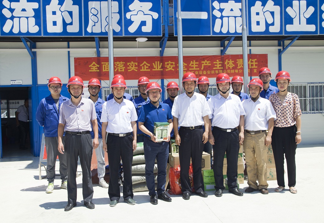 炎炎夏日送清涼,絲絲關(guān)愛寄深情。為確?;鶎右痪€職工安全度夏,7月21日上午,集團(tuán)公司黨委副書記牛曙東冒著高溫酷暑,在黨委工作部主任徐文聯(lián),安徽安裝公司董事長、總經(jīng)理王軍邦,紀(jì)委書記、工會主席李寬旭的陪同下,到安徽安裝公司蚌埠卷煙廠項目,為堅守在高溫下工作一線的干部員工送去了“清涼”和集團(tuán)黨委親切的慰問,同時還為黨員干部、入黨積極分子上了一堂別開生面的黨課。
