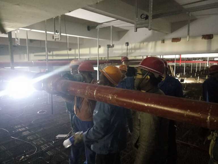11月28日下午,公司副總經(jīng)理劉安俊一行蒞臨安徽中煙工業(yè)蚌埠卷煙廠易地搬遷項(xiàng)目部檢查指導(dǎo)工作。他首先檢查了項(xiàng)目部管理人員在崗情況,隨后不辭辛苦深入施工現(xiàn)場,來到每一個施工班組,每一個施工點(diǎn)檢查指導(dǎo)。特別是在高架庫屋面板消防噴淋施工點(diǎn),滿堂腳手架,空間施工高度21米,劉安俊親自登上最高處施工平臺進(jìn)行指導(dǎo)。項(xiàng)目執(zhí)行經(jīng)理郭洋等陪同檢查并就現(xiàn)場項(xiàng)目的管理工作及存在的困難做了匯報(bào)。