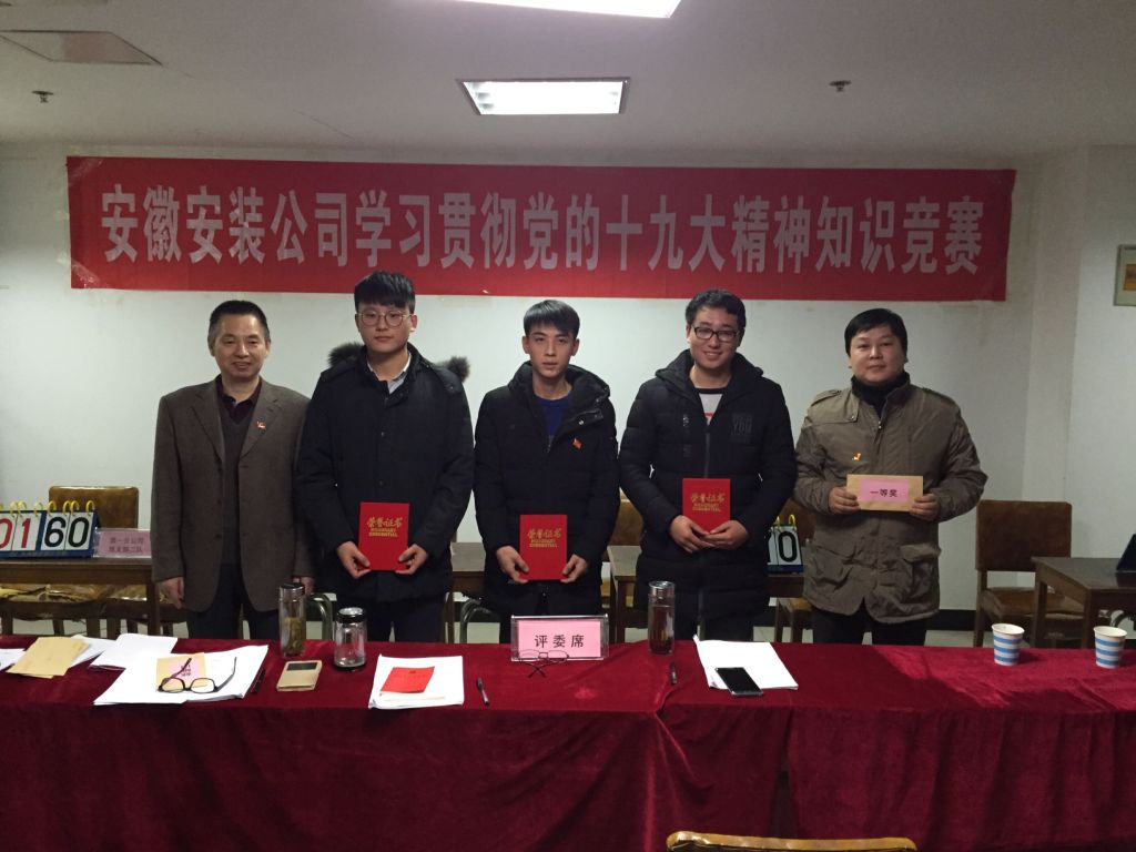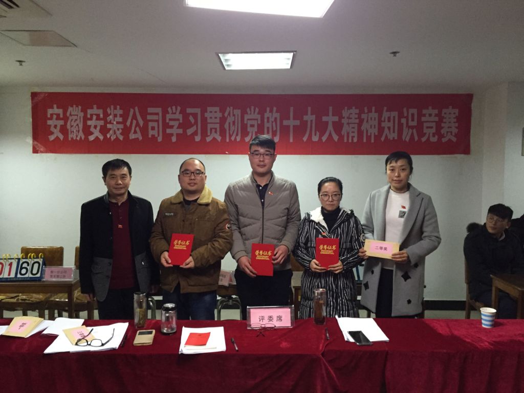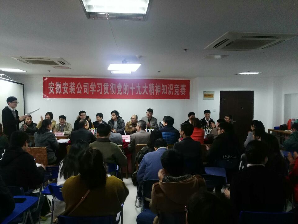 12月6日下午,安徽安裝公司學(xué)習(xí)貫徹黨的十九大精神知識競賽成功舉辦。來自公司機(jī)關(guān)及所屬各分公司黨支部8支代表隊(duì)24名選手參加比賽。