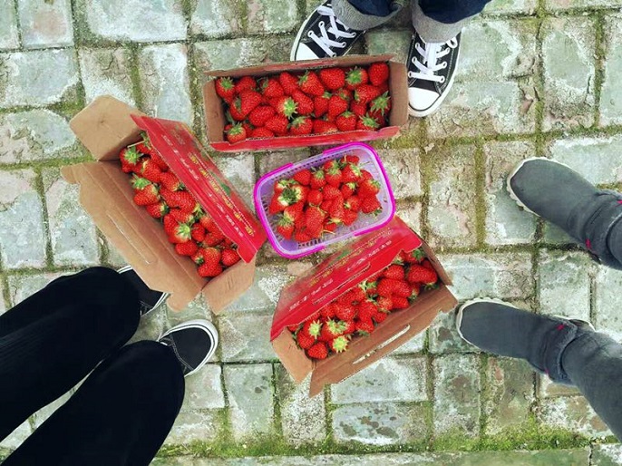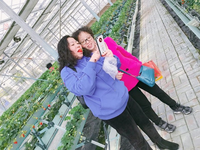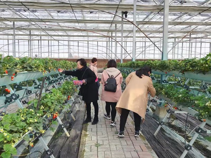 沐浴著清晨的第一縷陽光大家乘車出發(fā),一路上互相交流,歡聲笑語。 三月微風暖,九州春意濃,草莓大棚里一片生機勃勃,翠綠的葉子、鮮紅的果實、芬芳的果香都讓人感到心情格外舒暢。她們小心翼翼地行走在草莓土壟之間,尋找自己的“戰(zhàn)地”,一邊品嘗,一邊采摘,感受著自己動手的樂趣與收獲的喜悅。趁著美景,一起合影或是自拍,不時傳來歡快的笑聲。一個多小時后,每個人都有了豐碩的“戰(zhàn)果”,臉上都洋溢著燦爛的笑容,在這里留下了歡樂的記憶。