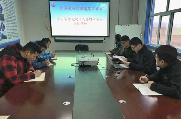 按照公司黨委《關(guān)于做好黨的十九屆四中全會(huì)精神學(xué)習(xí)宣傳工作的通知》要求,11月13日上午,西北分公司黨支部結(jié)合工作實(shí)際,分別組織機(jī)關(guān)及新疆烏蘇中水回用項(xiàng)目部全體黨員干部群眾召開(kāi)了理論學(xué)習(xí)會(huì),集中對(duì)黨的十九屆四中全會(huì)精神進(jìn)行學(xué)習(xí)宣貫。