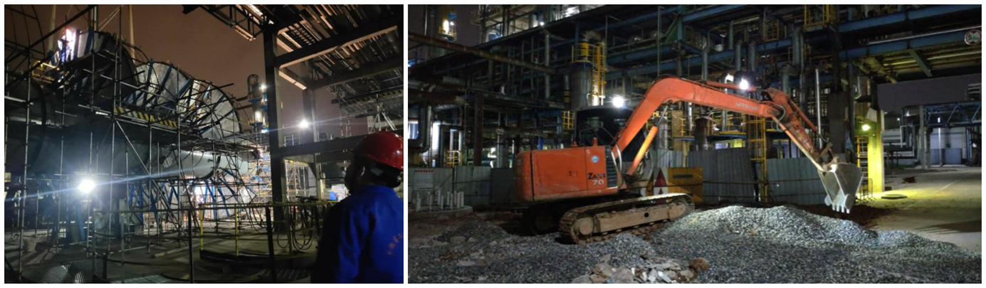 縱有豪情在胸,還需躬身以行。夜間,城市的萬家燈火漸弱,安徽安裝安慶分公司承建的安慶石化各項目工地上卻燈火通明,挖掘機、切割機、電焊機轟鳴不斷,處處一片忙碌的景象。