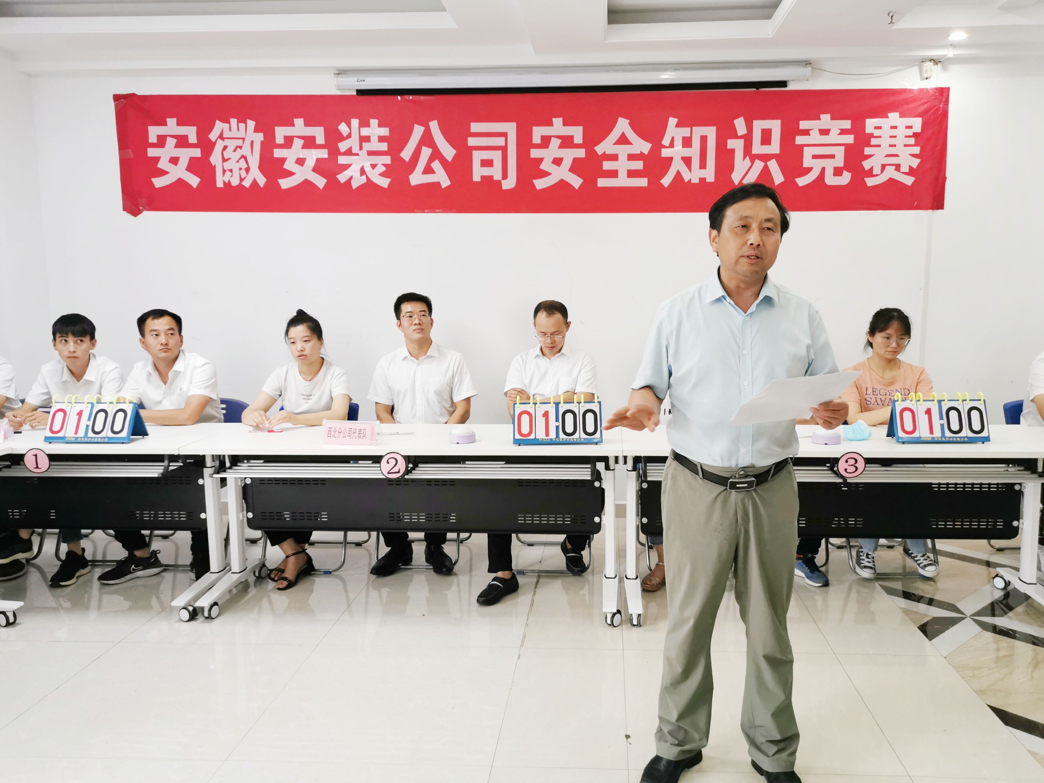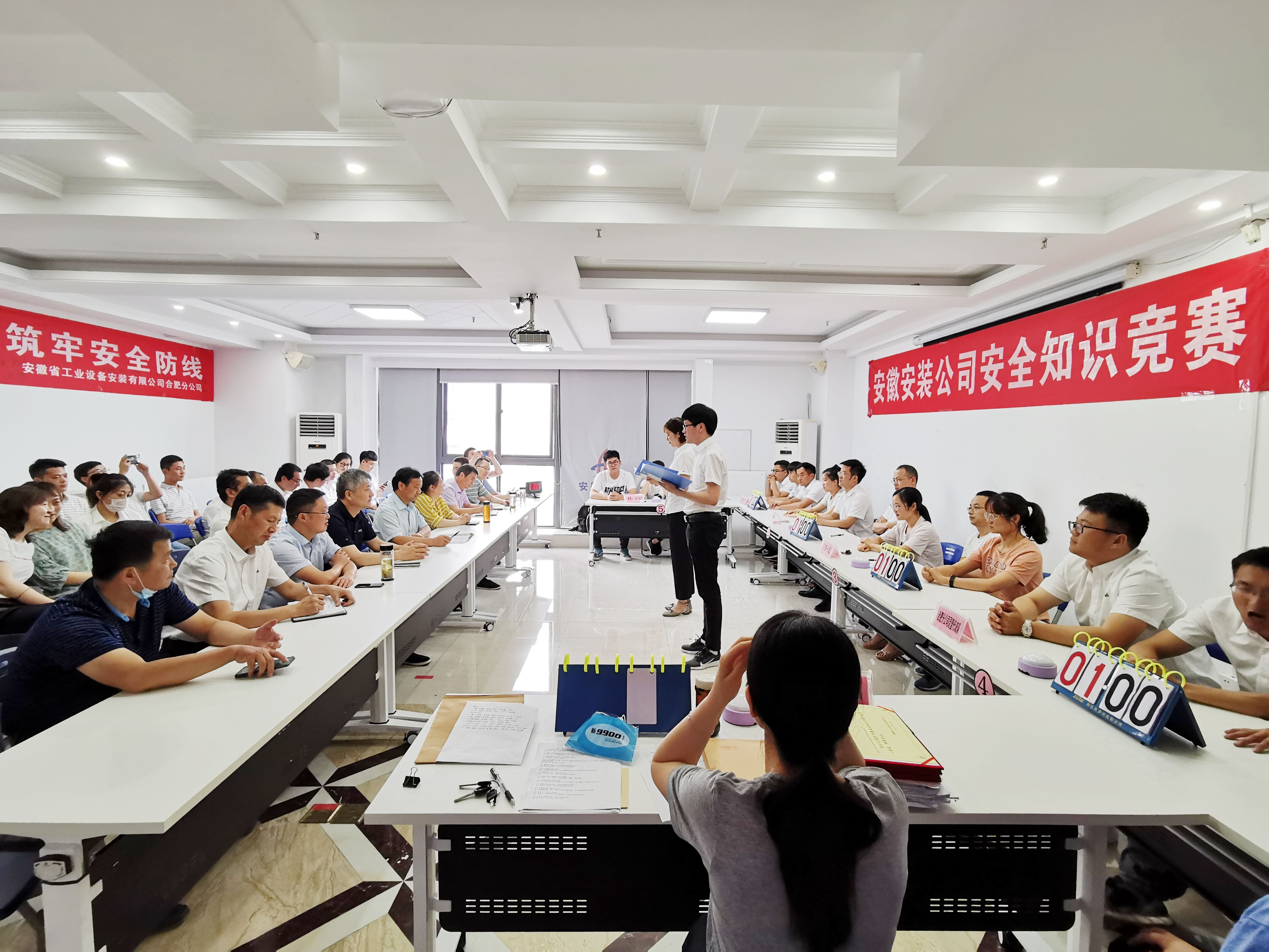 為切實(shí)開展2020年全國(guó)第十九個(gè)“安全生產(chǎn)月”活動(dòng),進(jìn)一步提高全員安全意識(shí)與知識(shí)水平,普及疫情防控相關(guān)知識(shí),6月11日下午,安徽安裝公司舉辦安全生產(chǎn)知識(shí)競(jìng)賽。公司黨委書記、董事長(zhǎng)胡六中,副總經(jīng)理高飛,紀(jì)委書記、工會(huì)主席李寬旭,副總經(jīng)理李原,總工程師吳繼成應(yīng)邀出席。