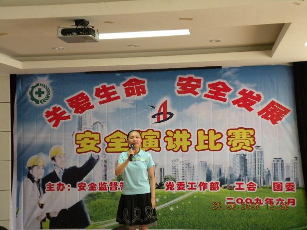 我公司選派的參賽選手姚春靜同志,以一場“生命之歌、安全之路”的精彩演講,博得現(xiàn)場聽眾的陣陣掌聲,最終獲得了一等獎(jiǎng)的好成績。