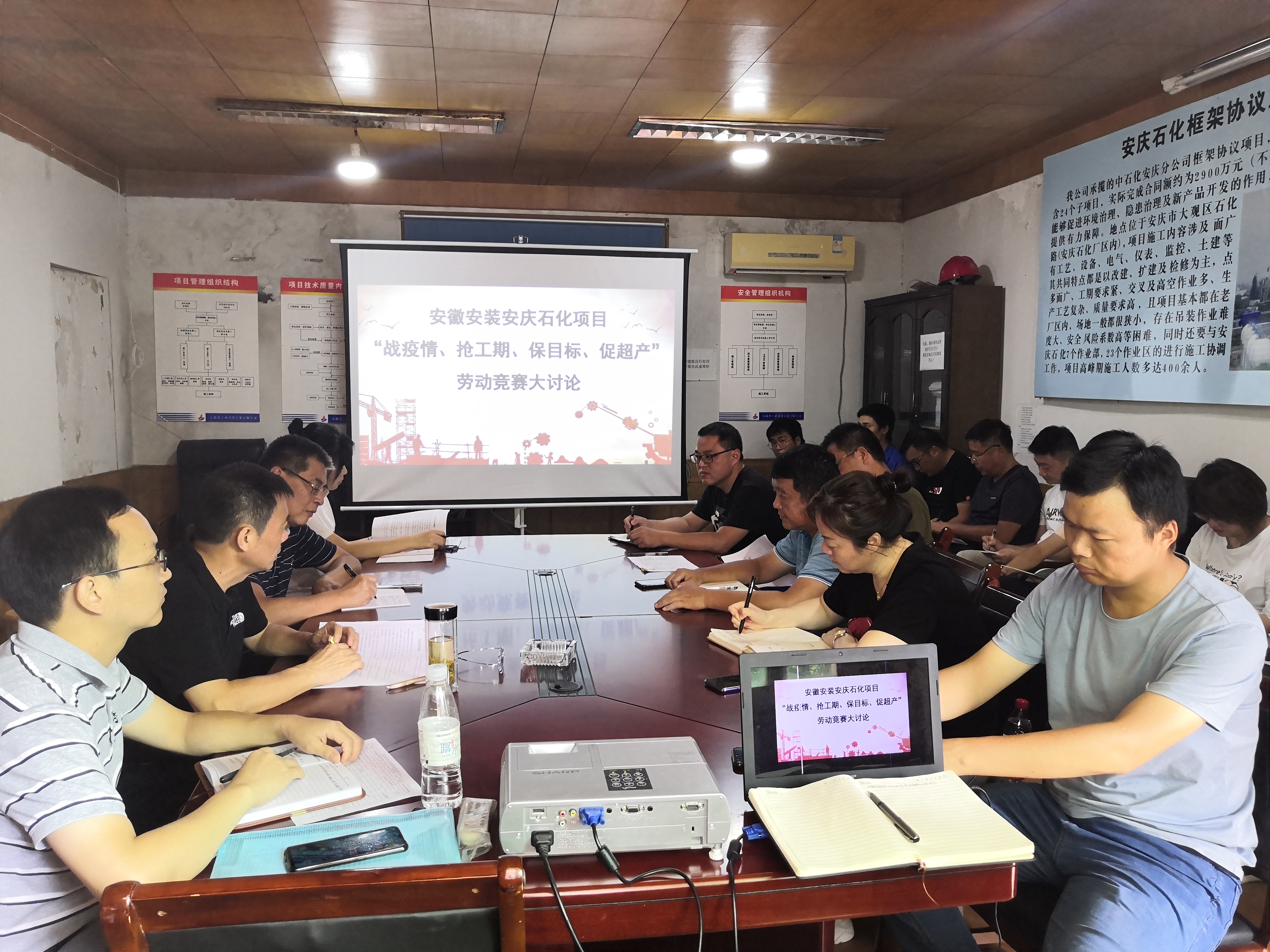 為認(rèn)真貫徹集團公司“戰(zhàn)疫情、搶工期、保目標(biāo)、促超產(chǎn)”勞動競賽活動精神,8月20日上午,安徽安裝公司圍繞“不能按時交工為恥辱”的履約意識,在安慶石化項目部會議室組織開展“戰(zhàn)疫情、搶工期、保目標(biāo)、促超產(chǎn)”主題大討論活動。公司紀(jì)委書記、工會主席李寬旭,總會計師張元斌,公司相關(guān)部門負(fù)責(zé)人,安慶分公司領(lǐng)導(dǎo)班子成員,項目經(jīng)理、技術(shù)負(fù)責(zé)人等共20余人參加會議,會議由李寬旭主持。