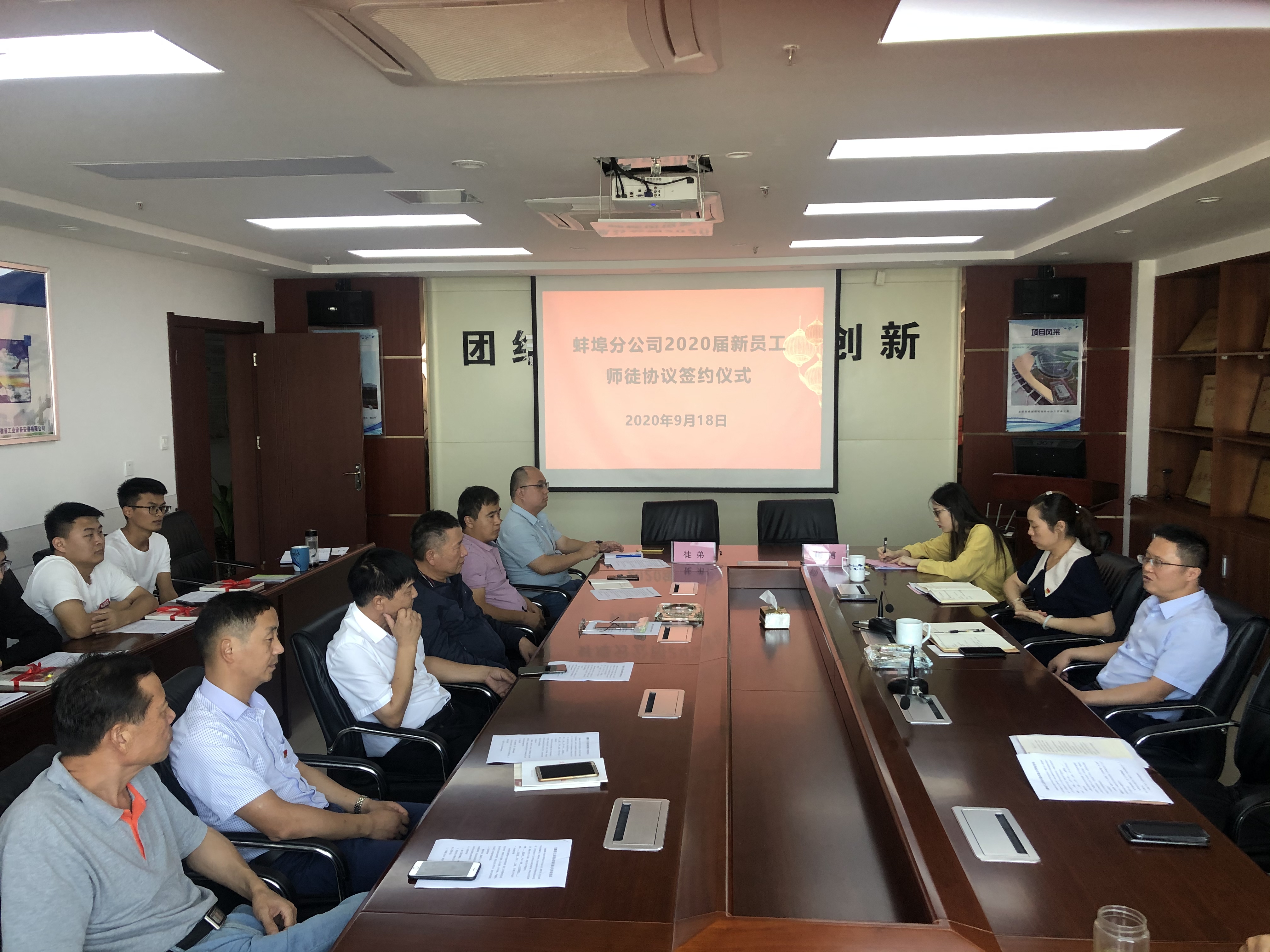 為了幫助新入職大學(xué)生盡快適應(yīng)企業(yè),熟悉工作,勝任崗位,2020年9月18日上午蚌埠分公司黨支部舉行了“2020屆新員工師徒結(jié)對(duì)”簽約儀式。分公司班子成員、部門(mén)負(fù)責(zé)人、項(xiàng)目經(jīng)理、師傅及2020屆新入職大學(xué)生參加了此次會(huì)議。