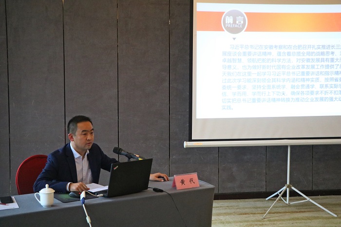 課上,黃代從四個(gè)方面宣傳貫徹了習(xí)近平總書(shū)記在安徽考察重要講話精神。一是提高政治站位,充分認(rèn)識(shí)習(xí)近平總書(shū)記考察安徽重要講話指示的重大意義。習(xí)近平總書(shū)記考察安徽重要講話指示精辟論述了我省當(dāng)前和未來(lái)發(fā)展的一系列方向性、根本性問(wèn)題,在安徽發(fā)展史上具有極其重大的里程碑意義,習(xí)近平總書(shū)記專(zhuān)程視察中國(guó)寶武馬鋼集團(tuán)時(shí)發(fā)表的重要講話,也為我們做好國(guó)企工作提供了思想武器、指明了前進(jìn)方向、注入了強(qiáng)大動(dòng)力。全體黨員領(lǐng)導(dǎo)干部要按照省委、省國(guó)資委統(tǒng)一要求,堅(jiān)持全面系統(tǒng)學(xué)、融會(huì)貫通學(xué)、聯(lián)系實(shí)際學(xué),確保深刻領(lǐng)會(huì)重大意義。二是把握核心要義,深刻領(lǐng)會(huì)習(xí)近平總書(shū)記考察安徽重要講話指示的精神實(shí)質(zhì)。“兩個(gè)堅(jiān)持”“兩個(gè)更大”,是總書(shū)記講話的核心要義,深刻回答了“十四五”乃至今后一個(gè)時(shí)期安徽發(fā)展在黨和國(guó)家全局中應(yīng)該承擔(dān)的使命、肩負(fù)的任務(wù),將安徽的發(fā)展層次、工作要求提升到前所未有的高度,是當(dāng)前和今后一個(gè)時(shí)期引領(lǐng)安徽發(fā)展的總方針、總遵循。三是聚焦重點(diǎn)任務(wù),切實(shí)答好加快美好安徽建設(shè)和集團(tuán)高質(zhì)量發(fā)展的必答題。全體黨員干部職工要深刻領(lǐng)悟全省領(lǐng)導(dǎo)干部“12個(gè)必答題”和安徽建工集團(tuán)“10個(gè)必答題”,緊扣目標(biāo)要求和各項(xiàng)任務(wù),謀深謀實(shí)貫徹落實(shí)的具體思路、促進(jìn)發(fā)展的實(shí)際舉措、推動(dòng)工作的保障機(jī)制。四是營(yíng)造濃厚氛圍,全面掀起學(xué)習(xí)貫徹習(xí)近平總書(shū)記考察安徽重要講話熱潮。安徽安裝公司要以“大學(xué)習(xí)”“大宣傳”“大調(diào)研”“大落實(shí)”為抓手,確保對(duì)重要講話精神融會(huì)貫通、入腦入心、明晰思路、落地見(jiàn)效。