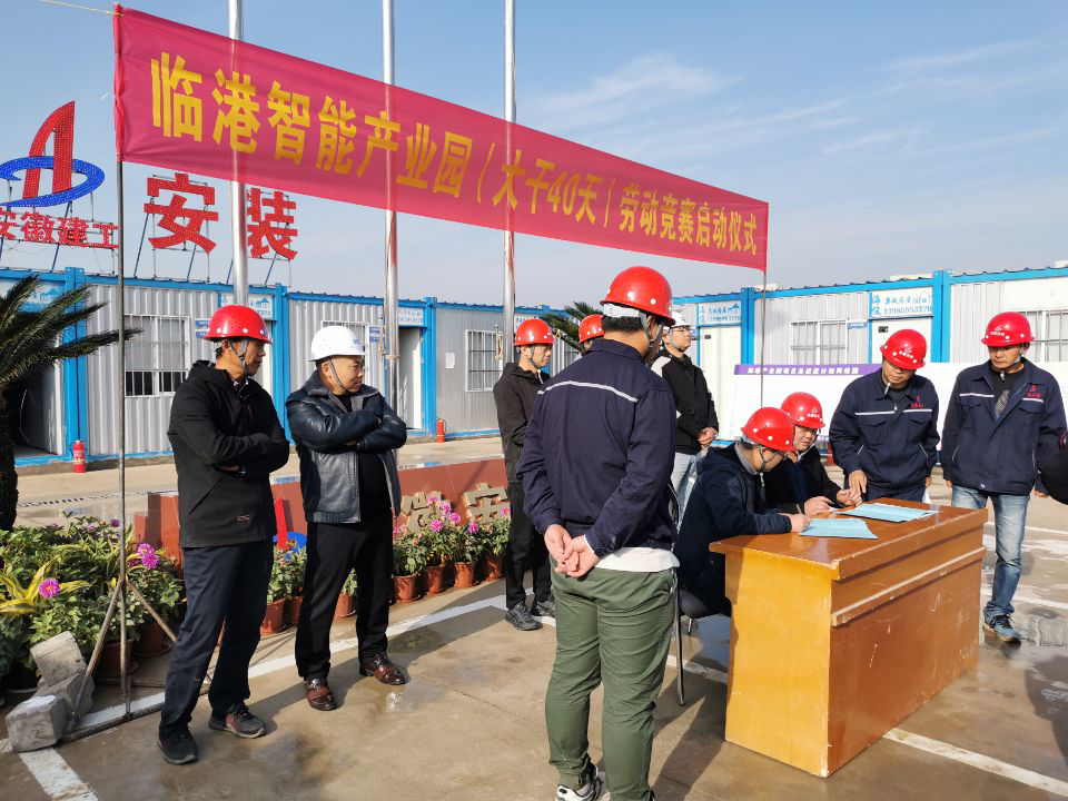 項目技術(shù)負(fù)責(zé)人宣讀了《關(guān)于組織蚌埠臨港項目“大干40天”勞動競賽的實施方案》,明確組織機構(gòu)、競賽時間、競賽范圍、責(zé)任劃分、節(jié)點目標(biāo)、考核內(nèi)容、獎罰措施等。