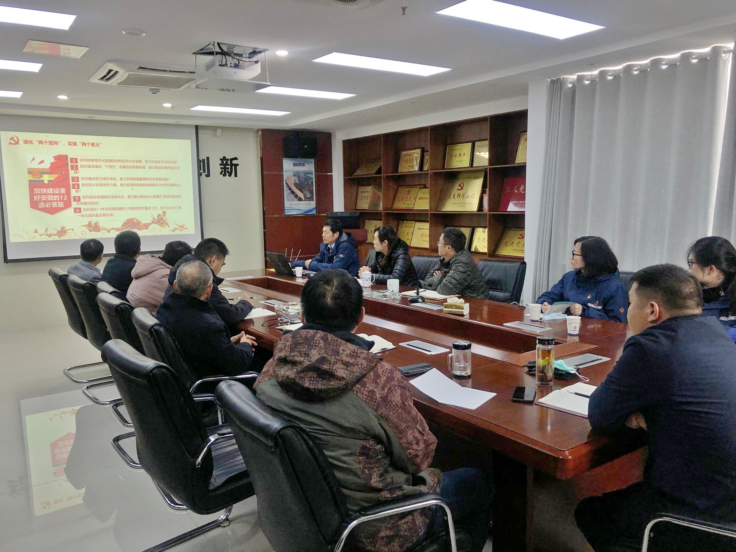 11月24日上午,合肥分公司黨支部書記胡迎東赴蚌埠分公司作題為《加強(qiáng)黨建與生產(chǎn)經(jīng)營的深度融合——以高質(zhì)量的黨建引領(lǐng)分公司高質(zhì)量的發(fā)展》專題黨課,分公司領(lǐng)導(dǎo)班子成員、全體黨員、各科室負(fù)責(zé)人及項(xiàng)目經(jīng)理參加本次黨課學(xué)習(xí)。