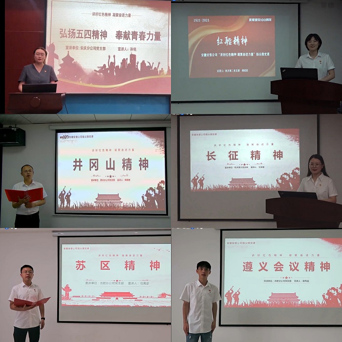 指尖微黨課課堂。為慶祝建黨100周年,促進(jìn)黨史學(xué)習(xí)教育方式多樣化,讓廣大基層一線黨員尤其是青年黨員同志廣泛參與到黨史宣講中來(lái),公司黨委依托公司官方微信公眾號(hào)重新打造安徽安裝的黨課品牌——“指尖微黨課”課堂,組織開(kāi)展了“講好紅色精神 凝聚奮進(jìn)力量”指尖微黨課活動(dòng)。所屬各黨支部積極推薦黨員同志,尤其是基層一線的黨員同志參與到公司黨委“指尖微黨課宣講員”隊(duì)伍中來(lái),此次指尖微黨課課堂每集時(shí)長(zhǎng)5-8分鐘,短小簡(jiǎn)潔且內(nèi)涵豐富,以五四精神、紅船精神、井岡山精神、延安精神、航天精神、偉大抗疫精神等人民熔鑄鍛造的偉大紅色精神為主題,講述這些紅色精神背后的感人故事,圍繞每一期紅色精神主題,主講人結(jié)合自身工作實(shí)際,談感想談體會(huì)。指尖微黨課旨在變“被動(dòng)學(xué)”為“主動(dòng)講”,變“集中念開(kāi)會(huì)讀”為“隨時(shí)看隨地學(xué)”,解決了公司項(xiàng)目點(diǎn)多面廣,黨員分散不易集中系統(tǒng)學(xué)習(xí)的問(wèn)題,現(xiàn)在只要打開(kāi)手機(jī),利用零碎時(shí)間就可以通過(guò)身邊人的宣講更直觀更生動(dòng)地領(lǐng)略黨史中的奮進(jìn)力量,切實(shí)做到“人人都是宣講員、黨課揣進(jìn)口袋中”。