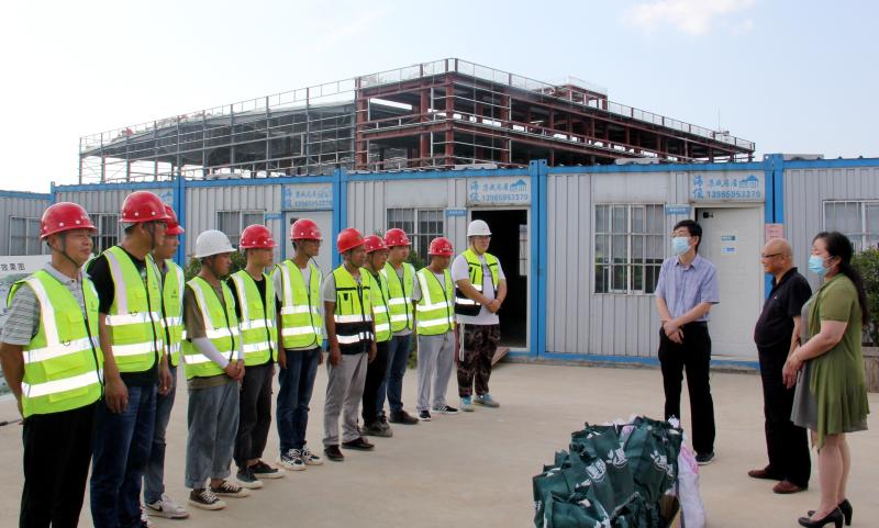 楊金城指出,蚌埠市總工會此次“送清涼”活動,既是關(guān)心一線生產(chǎn)工人、為職工服務(wù)的重點工作,也是“學(xué)黨史、辦實事”的一項具體措施,安徽安裝公司在臨港智能制造產(chǎn)業(yè)園項目施工中顧全大局,擔(dān)當(dāng)作為,不僅鍛造了一支高素質(zhì)的施工隊伍,更為蚌埠市經(jīng)濟(jì)發(fā)展做出了較大貢獻(xiàn),希望項目部全體職工繼續(xù)發(fā)揚(yáng)吃苦耐勞精神,做好疫情防控,將防暑降溫、安全生產(chǎn)等各項舉措落實到位,為職工提供一個舒適安全的工作環(huán)境。