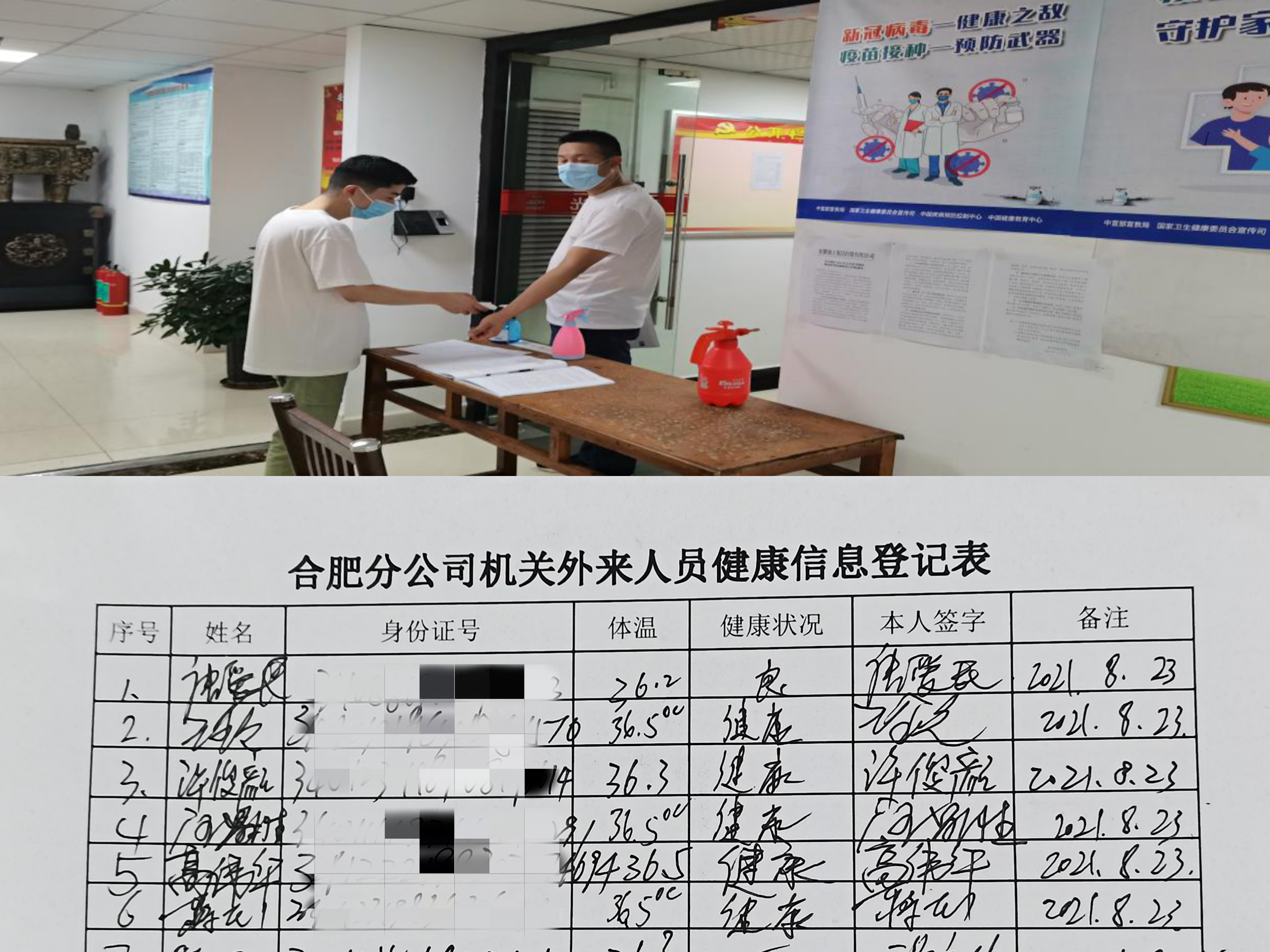 分公司機(jī)關(guān)每日體溫監(jiān)測(cè)并進(jìn)行外來人員信息登記表