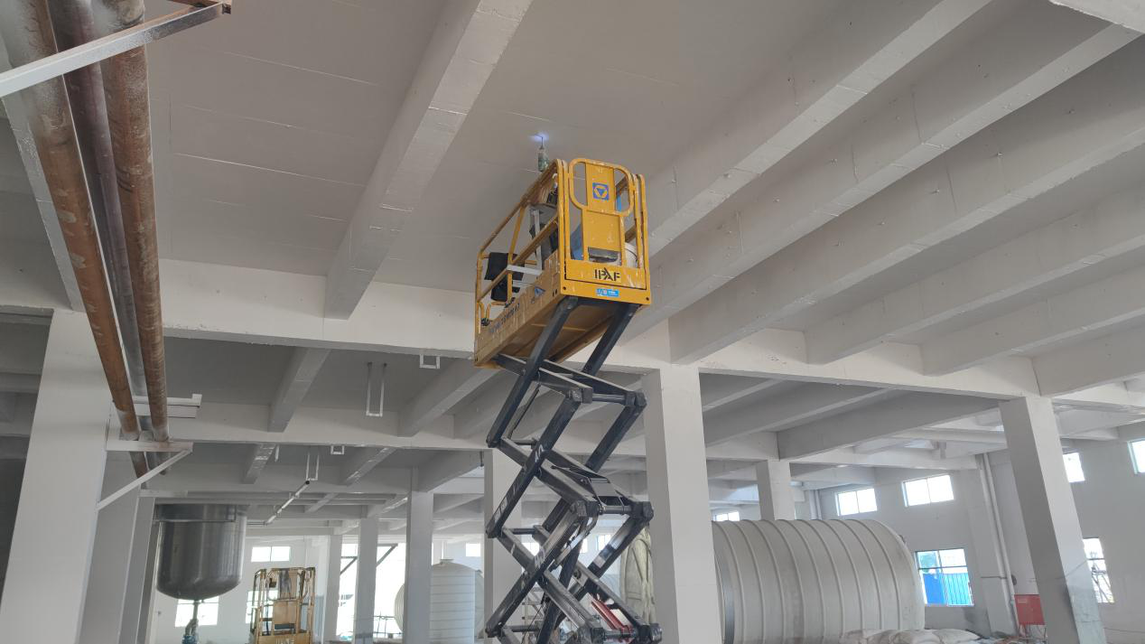 氫氧化鎂車間工人進(jìn)行消防支架安裝工作