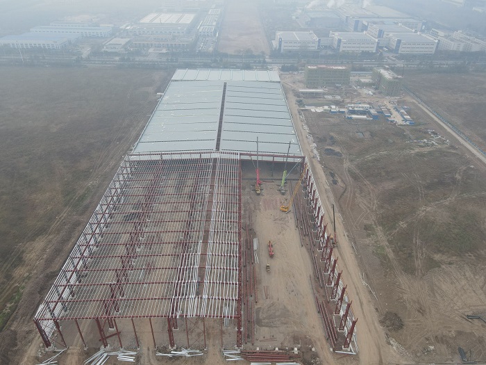由合肥分公司承建的安徽建工智能鋼構(gòu)項(xiàng)目正在緊張施工中,現(xiàn)主體架構(gòu)已初現(xiàn)雛形。11月17日上午,項(xiàng)目部“50米跨屋面梁吊裝”工作正在進(jìn)行,公司總工程師吳繼成現(xiàn)場指導(dǎo)吊裝工作,并為第一榀屋面梁進(jìn)行掛紅儀式。公司總經(jīng)理助理、合肥分公司經(jīng)理、黨支部書記趙永峰,公司總工辦、安全部等相關(guān)部門負(fù)責(zé)同志參加。