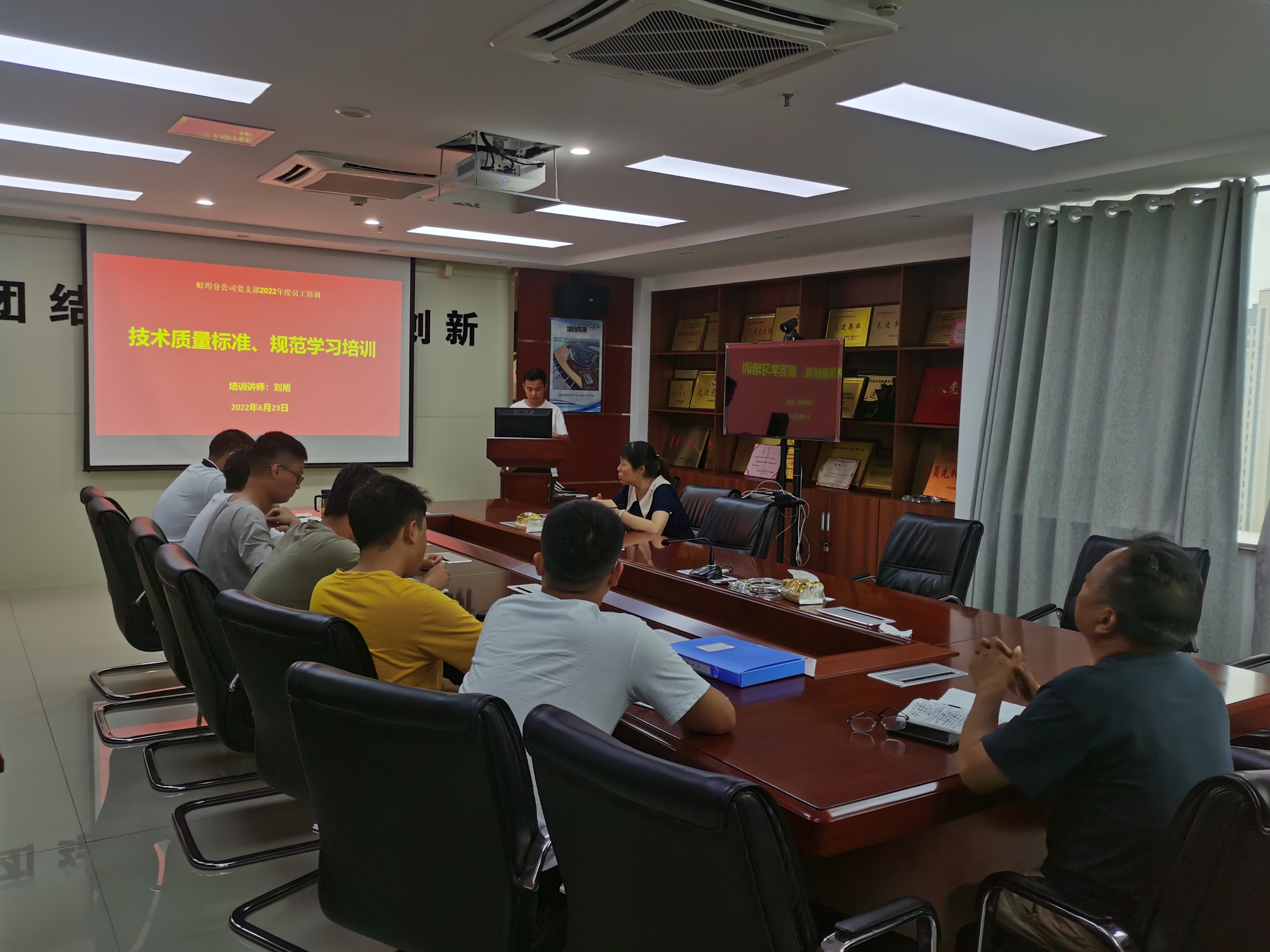 為扎實推進蚌埠分公司“項目管理年”活動開展,強化項目員工對技術(shù)規(guī)范應(yīng)知應(yīng)會學(xué)習(xí)掌握,根據(jù)蚌埠分公司黨支部2022年度員工培訓(xùn)計劃安排,6月23日下午,分公司第五期培訓(xùn)課堂如期開課。本期培訓(xùn)內(nèi)容為《技術(shù)質(zhì)量標準、規(guī)范學(xué)習(xí)》,由分公司技術(shù)質(zhì)量部劉旭主講。