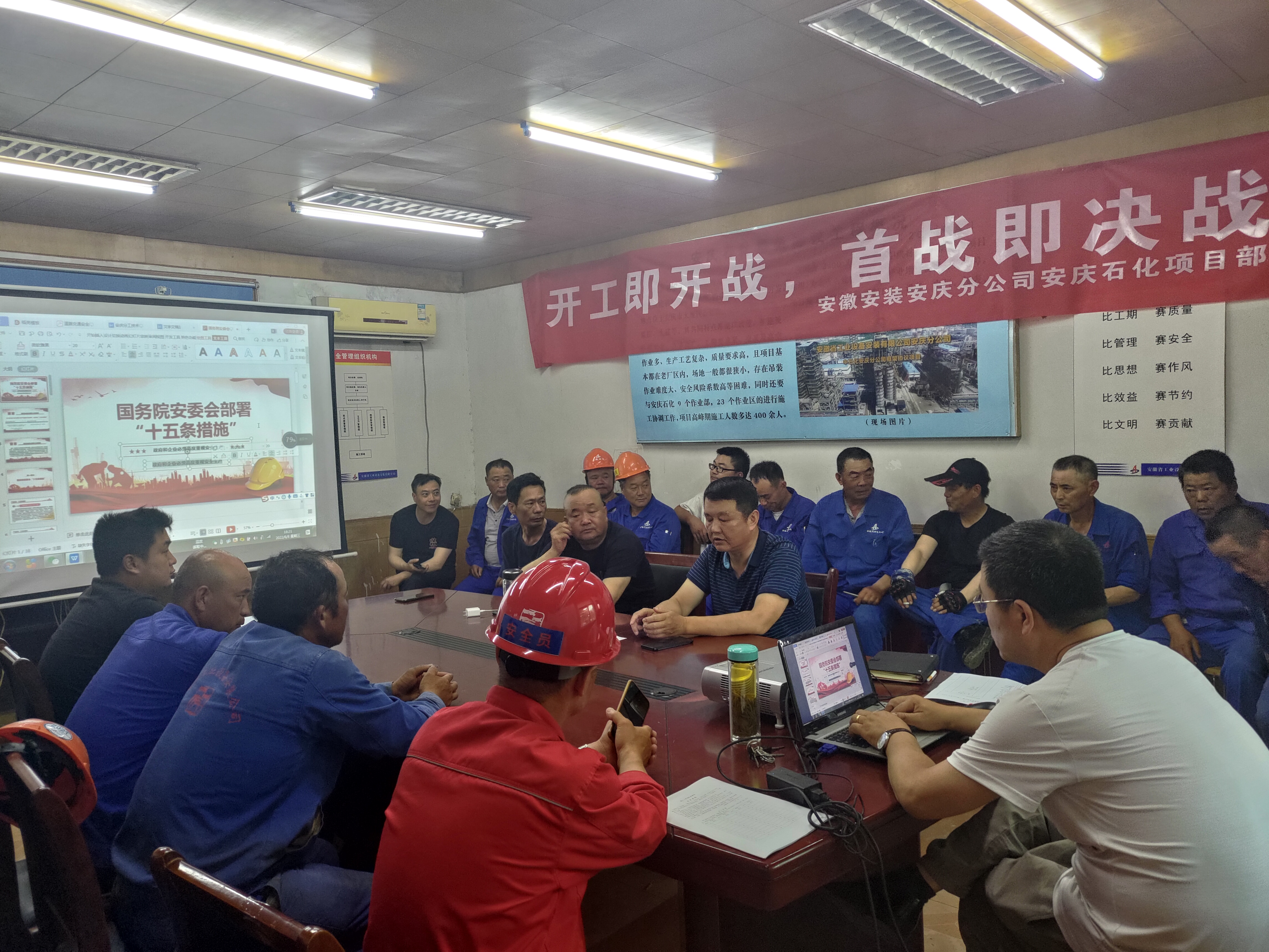 6月8日,在安慶石化項(xiàng)目部開展安全月集中宣講、培訓(xùn)輔導(dǎo)活動(dòng),結(jié)合項(xiàng)目特點(diǎn),對(duì)國務(wù)院十五條措施、新安全生產(chǎn)法、安慶石化交通安全、7+1直接作業(yè)環(huán)節(jié)管控等進(jìn)行講座。