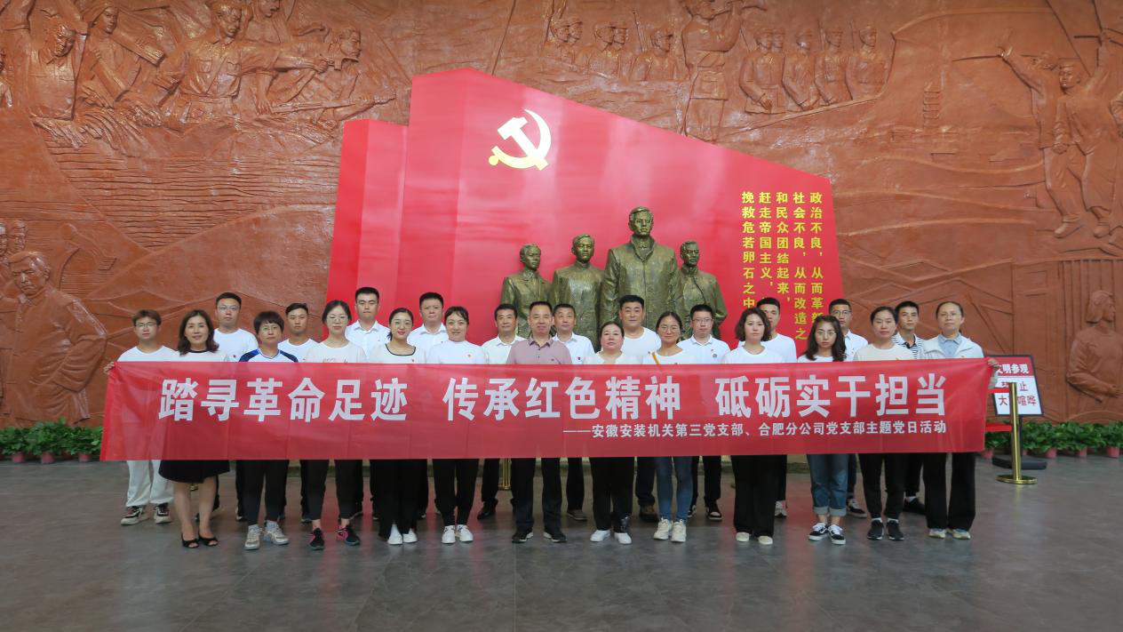 為熱烈慶祝中國共產(chǎn)黨成立101周年,深入學(xué)習貫徹習近平新時代中國特色社會主義思想,持續(xù)推動黨史學(xué)習教育走深走實。7月8日,機關(guān)第三黨支部和合肥分公司黨支部聯(lián)合開展以“踏尋革命足跡 傳承紅色精神 砥礪實干擔當”為主題的黨日活動,公司黨委書記、董事長胡六中,副總經(jīng)理李原以普通黨員身份參加活動。
