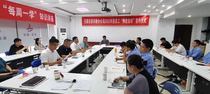 為促進(jìn)新員工快速成長,加快公司人才隊(duì)伍建設(shè),8月17日,市政分公司舉行了2022年新員工“師徒結(jié)對”簽約儀式。分公司領(lǐng)導(dǎo)班子、全體員工參加儀式。