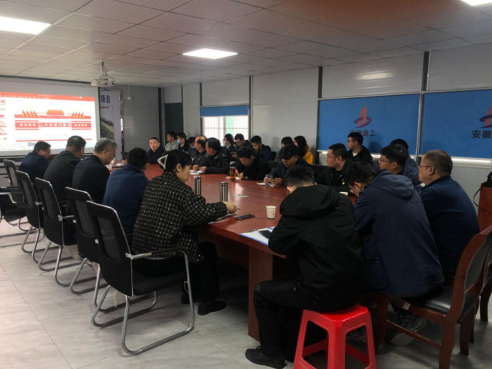 11月23日上午,公司黨委委員、副總經(jīng)理趙伯平深入項(xiàng)目一線,在房建(裝飾)分公司阜南污水廠項(xiàng)目宣講黨的二十大精神。公司總工程師吳繼成、公司相關(guān)部門負(fù)責(zé)同志及分公司班子成員、全體黨員干部職工近40人參加。