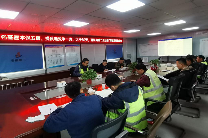 為持續(xù)貫徹落實集團公司“強基固本保安康,提質增效爭一流”主題勞動競賽活動精神,11月25日上午,蚌埠分公司蚌埠市公安局“三個基地”項目部召開“強基固本保安康,提質增效爭一流,大干30天,確保完成節(jié)點目標”勞動競賽啟動會。分公司經理、黨支部副書記趙銘亮,黨支部書記、副經理王偉,項目部全體管理人員及施工班組代表參加會議。