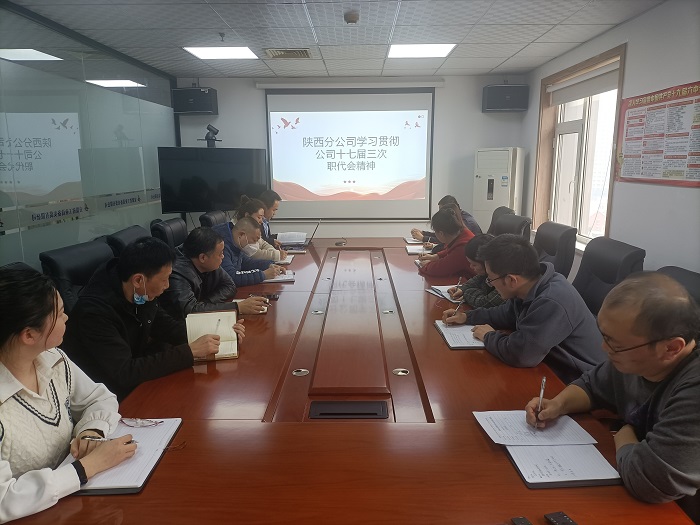 為深入學(xué)習(xí)公司十七屆三次職代會(huì)精神,全面貫徹落實(shí)會(huì)議部署要求。2月7日,陜西分公司組織召開(kāi)專題學(xué)習(xí)會(huì),會(huì)議由分公司經(jīng)理、黨支部書記張寶深主持,分公司機(jī)關(guān)全體員工參會(huì)。