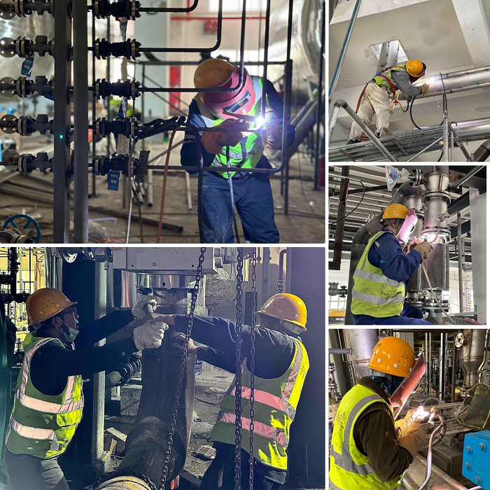 面對(duì)建設(shè)單位準(zhǔn)備在5月下旬進(jìn)行試生產(chǎn)的目標(biāo)任務(wù),車間內(nèi)新增管線是否能夠按時(shí)完成就成為確保試生產(chǎn)順利進(jìn)行的最大難題。為此,項(xiàng)目部精心組織、加強(qiáng)協(xié)調(diào),認(rèn)真部署,通過多次召開碰頭會(huì)最終達(dá)成最優(yōu)施工進(jìn)度方案,做到明確每日進(jìn)度內(nèi)容,合理安排施工人員,積極做好施工現(xiàn)場各項(xiàng)安全防護(hù)工作,在保證原有工程量的基礎(chǔ)上,對(duì)新增管線進(jìn)行科學(xué)分解,新增突擊作業(yè)隊(duì),采用“5+2”“白加黑”,多個(gè)小組多工作面同時(shí)施工的方法,開足馬力快速推進(jìn),從而大大提高了施工速度,提升了工作效率。