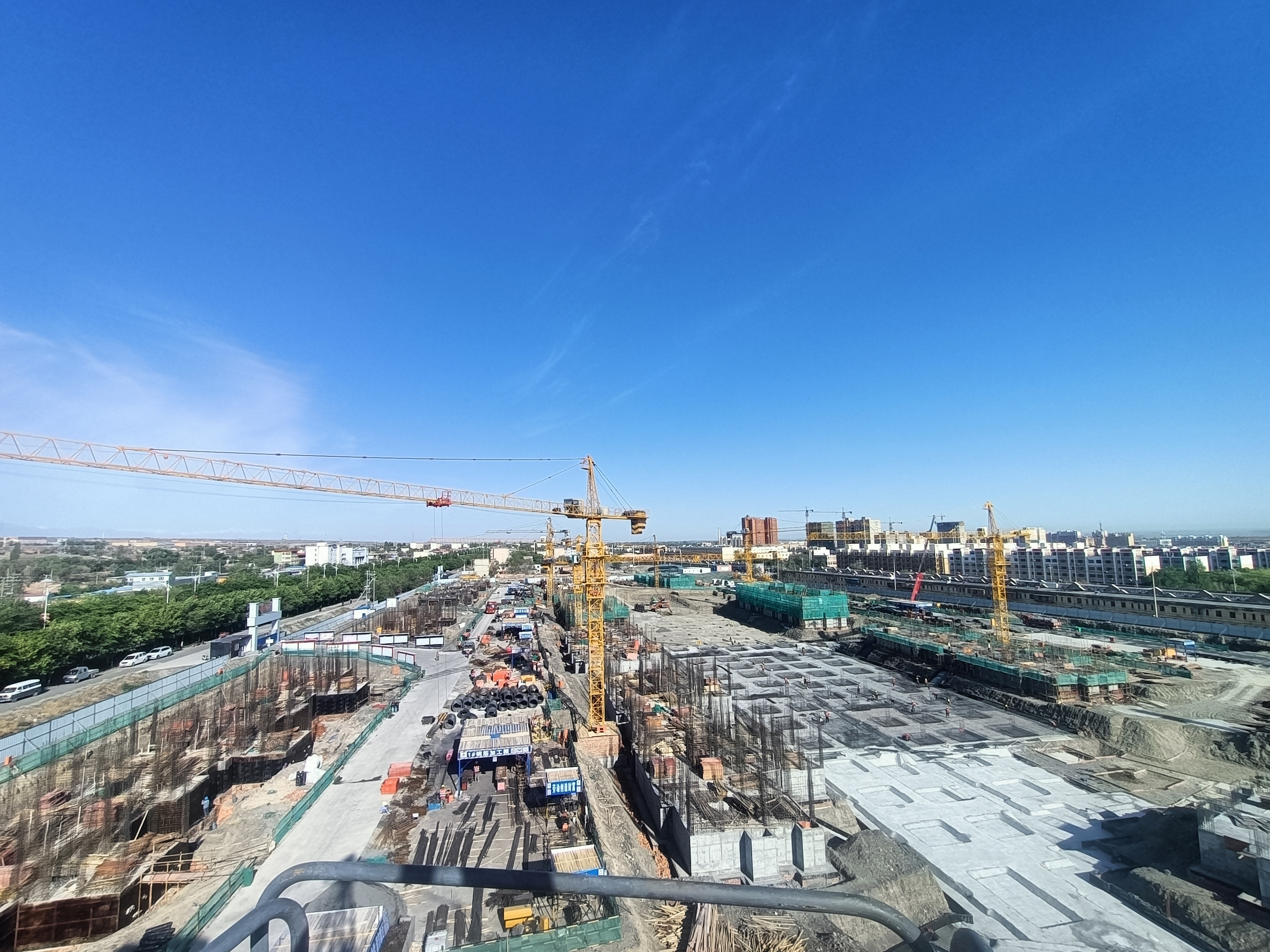 烏蘇市南苑新城項目本項目占地面積118047.31㎡,項目新建34棟住宅樓,1466套住宅,平均層數(shù)10層,總建筑面積222500.41㎡。其中:地上住宅總面積185360㎡,配套商服1209㎡,配套綜合樓1890㎡,日間照料中心1758㎡,社區(qū)物業(yè)用房1869㎡,地下室建筑面積18903㎡,地下車庫及人防建筑面積11511.41㎡,綠化面積42000㎡,配套建設及附屬工程。截至目前,A區(qū)1,2,3,4基礎土方開挖,筏板防水施工,筏板鋼筋綁扎已完成,6,8,12,13,14,15,16,17,18,20,21,22,23,24#正負零以下結構工程施工完畢;A6,12,21,22,23,24#基礎回填已完畢,一層外架施工已完成70%,一層結構已完成60%;人防地庫土方已開挖至消防水池,總體土方已開挖完成90%,地庫31-38交A-1至A-8軸鋼筋綁扎完成,16-26軸交A-K軸鋼筋綁扎完畢,木工筏板加固模板支護工程已完成50%;B區(qū)換熱站,3,4#土方工程已開挖至基底預留30CM。