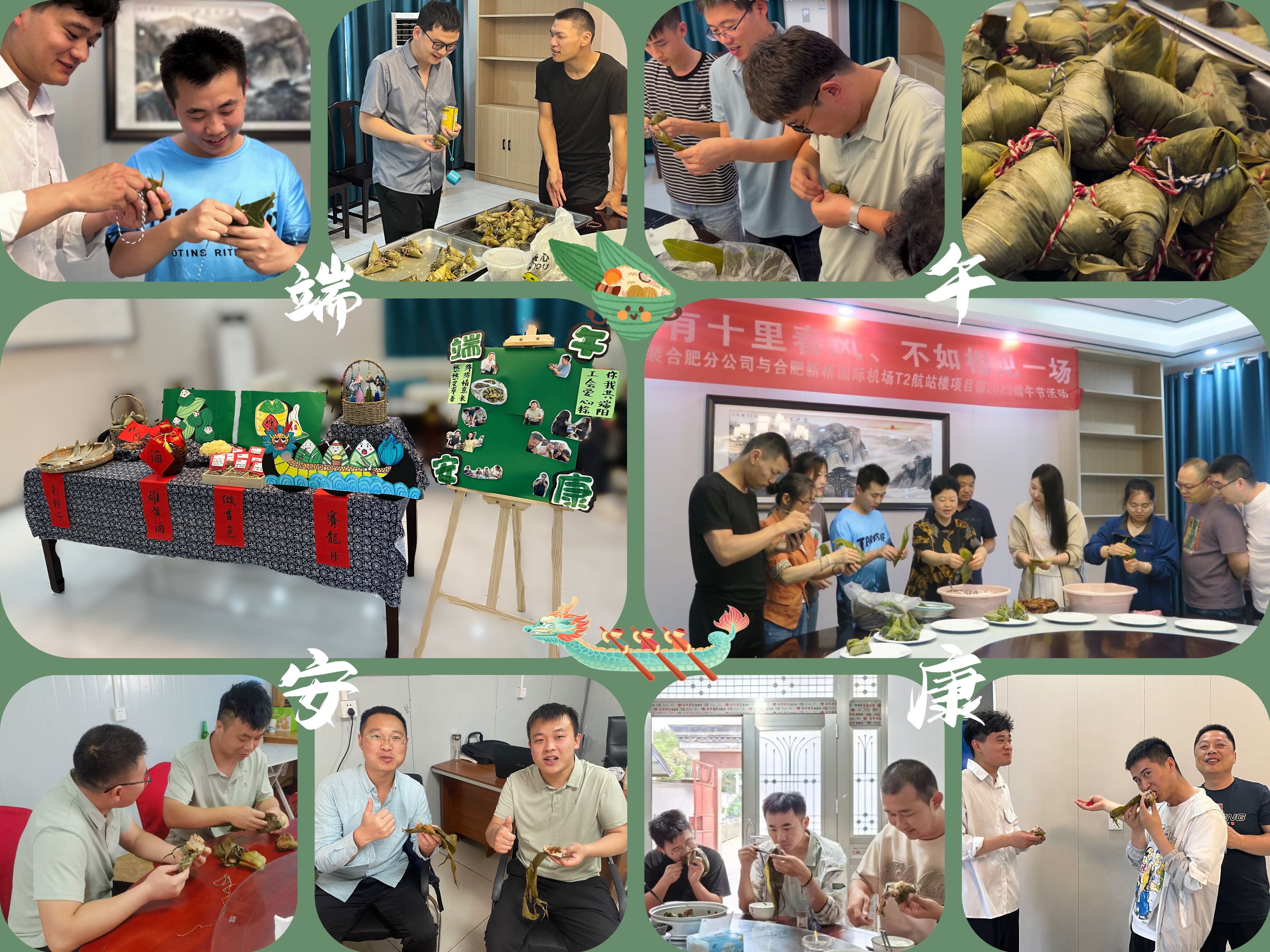 端午臨中夏,時(shí)清日復(fù)長,為傳承和弘揚(yáng)中華民族傳統(tǒng)文化,豐富職工群眾的精神文化生活,在端午傳統(tǒng)節(jié)日來臨之際,合肥分公司邀請合肥新橋國際機(jī)場T2航站樓項(xiàng)目部共同開展了“粽有十里春風(fēng)、不如相見一場”主題活動,讓大家在項(xiàng)目上也能感受到家中的“粽香濃情”,感受到企業(yè)大家庭的關(guān)懷和溫暖。