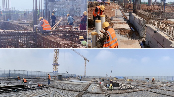 合肥新橋國際機場T2航站樓項目正在進行防雷接地,焊接圓鐵、管口封堵和預(yù)埋電氣保護套管工作