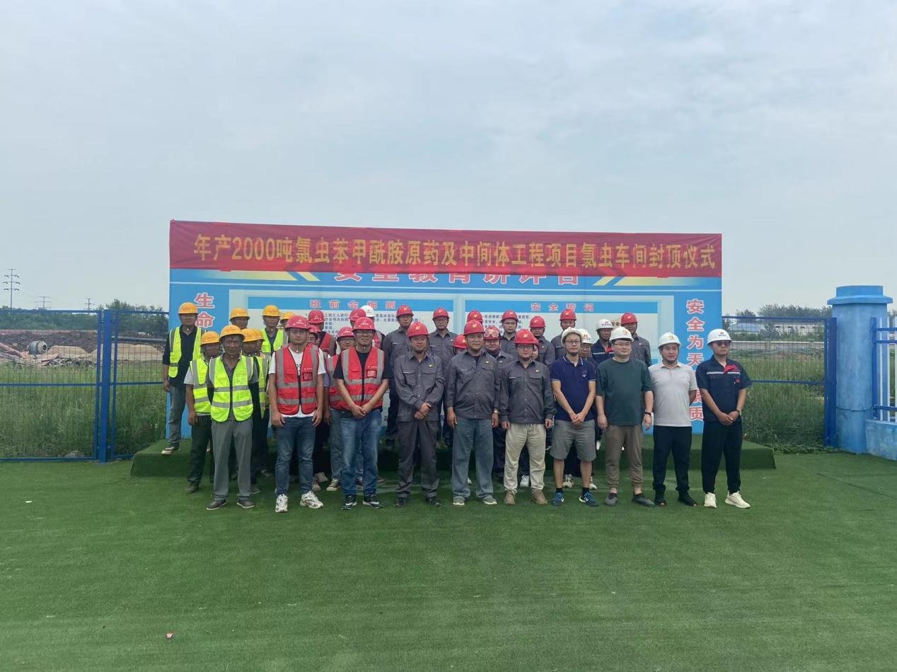 8月31日,蚌埠市淮上區(qū)化工園區(qū)內(nèi)年產(chǎn)2000噸氯蟲(chóng)苯甲酰胺原藥及中間體項(xiàng)目氯蟲(chóng)一號(hào)車間,伴隨著最后一方混凝土澆筑到位,聳立的車間主體被“封頂大吉”的大紅條幅和紅色祝福標(biāo)語(yǔ)裝點(diǎn)得格外喜慶!建設(shè)單位、監(jiān)理單位、施工單位等共同參加了封頂儀式。