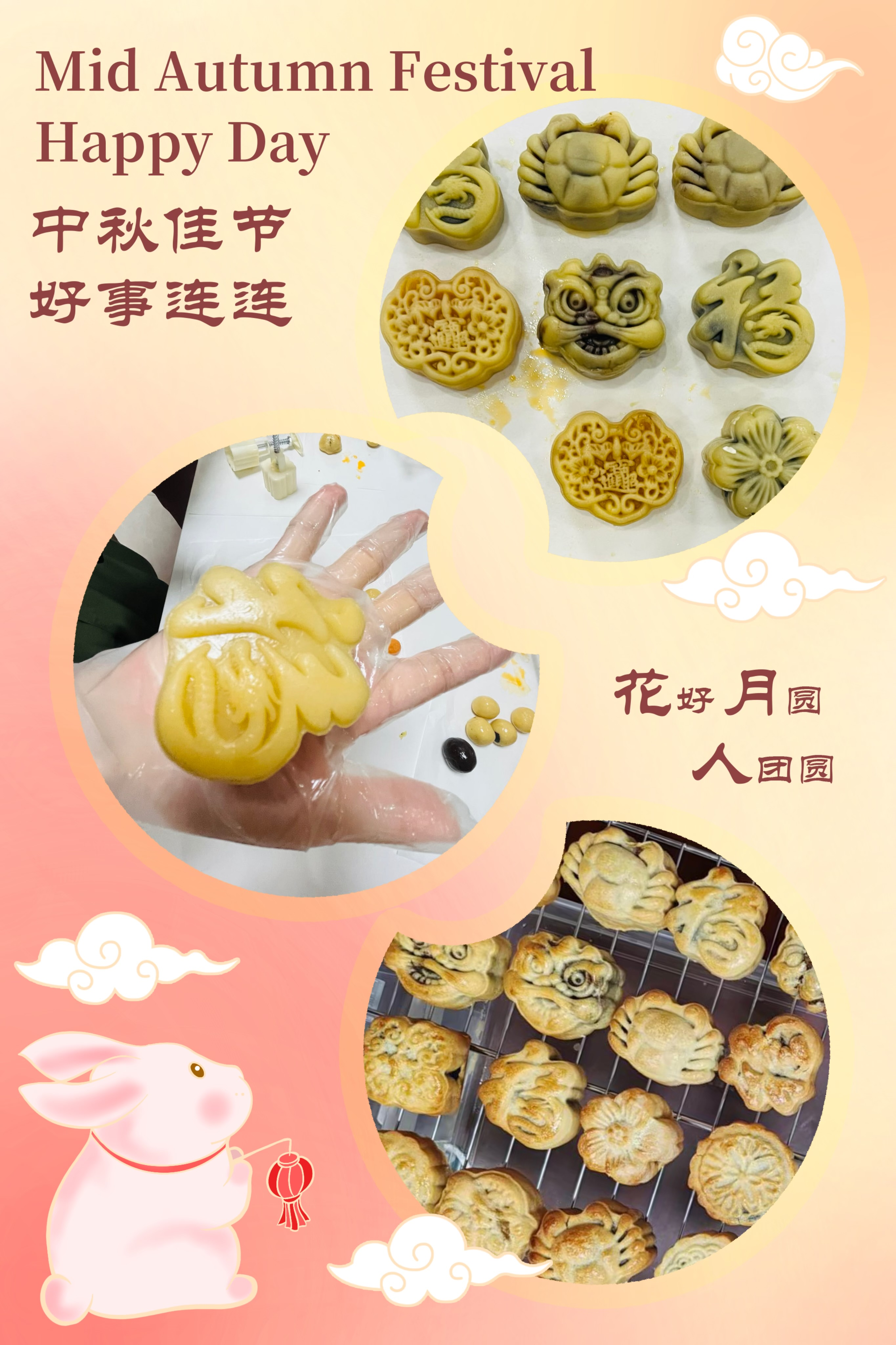在活動現(xiàn)場,面點老師為大家簡單介紹了月餅的起源、種類和特點,隨后重點介紹了餅皮、餡料、模具等制作材料的用量和制作方式。在聽完講解后,大家紛紛躍躍欲試,一邊探討著月餅的制作方法,一邊互相傳遞豆沙、鳳梨、山楂等制作月餅的食材。揉面、搟皮、加餡料、包月餅、放入模具按壓成型,一套動作行云流水,忙得不亦樂乎。在輕松愉快的氛圍中,一個個色澤鮮艷、小巧玲瓏、造型各異的月餅包好了呈現(xiàn)在每個人的手中,經(jīng)過精心烤制后,一盤盤美味的月餅在大家的歡聲笑語中出爐了。一口咬下去,軟糯的冰皮,香甜的豆沙,讓人回味無窮。大家吃著自己親手包的月餅,甜在口中,更甜在心里,把包好的月餅帶回家,將甜蜜與家人一起分享。