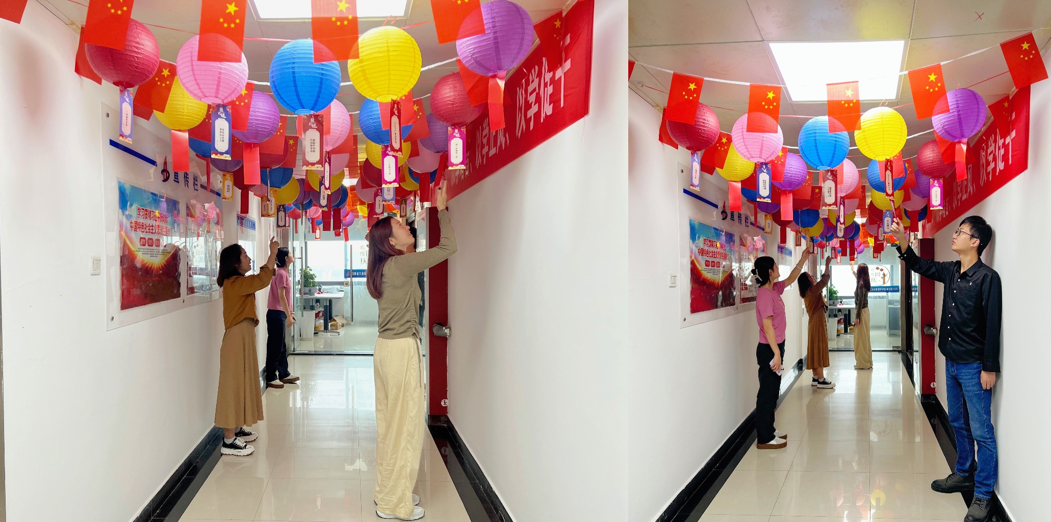 活動(dòng)期間,分公司購(gòu)置了各類(lèi)節(jié)日裝飾品,對(duì)分公司工作環(huán)境進(jìn)行了精心裝扮,鮮紅的國(guó)旗和多彩的燈籠營(yíng)造了濃厚的節(jié)日氛圍?;顒?dòng)過(guò)程中,分公司員工盡情分享工作中的感想與收獲,品嘗擺放的石榴等水果以及各式月餅,積極踴躍參加猜燈謎、投壺游戲等活動(dòng)。在制作燈籠環(huán)節(jié),員工們?nèi)褙炞?,仔?xì)認(rèn)真地搭接燈籠的每一個(gè)構(gòu)件,看著承載著團(tuán)圓的傳統(tǒng)藝術(shù)品在手中慢慢成形,大家歡聲笑語(yǔ)、頗有成就。