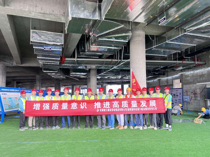 建工安裝新橋國際機場T2航站樓機電安裝項目,位于合肥市新橋國際機場場區(qū)內(nèi),公司承接的施工范圍包括航站樓南北指廊給排水系統(tǒng)、采暖、通風(fēng)空調(diào)系統(tǒng)、消防及電氣系統(tǒng)安裝等,合同總造價2.747億元,合同工期總?cè)諝v天數(shù)941天,計劃于2025年10月15日竣工。本工程為省一號重點工程,工程體量大,建筑空間大,施工內(nèi)容多、難度大、工期緊,質(zhì)量要求高。自開工建設(shè)以來,項目部結(jié)合實際,通過設(shè)立“黨員示范崗”和成立黨員技術(shù)攻關(guān)小組,助推項目建設(shè)“加速度”。項目黨員同志帶頭研究新工藝、創(chuàng)新使用新方法,大力開展技術(shù)攻關(guān),通過不斷摸索實驗,逐步形成了以BIM+“樣板引路”的智慧施工管理模式,在充分發(fā)揮黨員先鋒模范作用的同時,進一步提高生產(chǎn)效率和工程質(zhì)量,促進黨建和生產(chǎn)經(jīng)營有效融合。