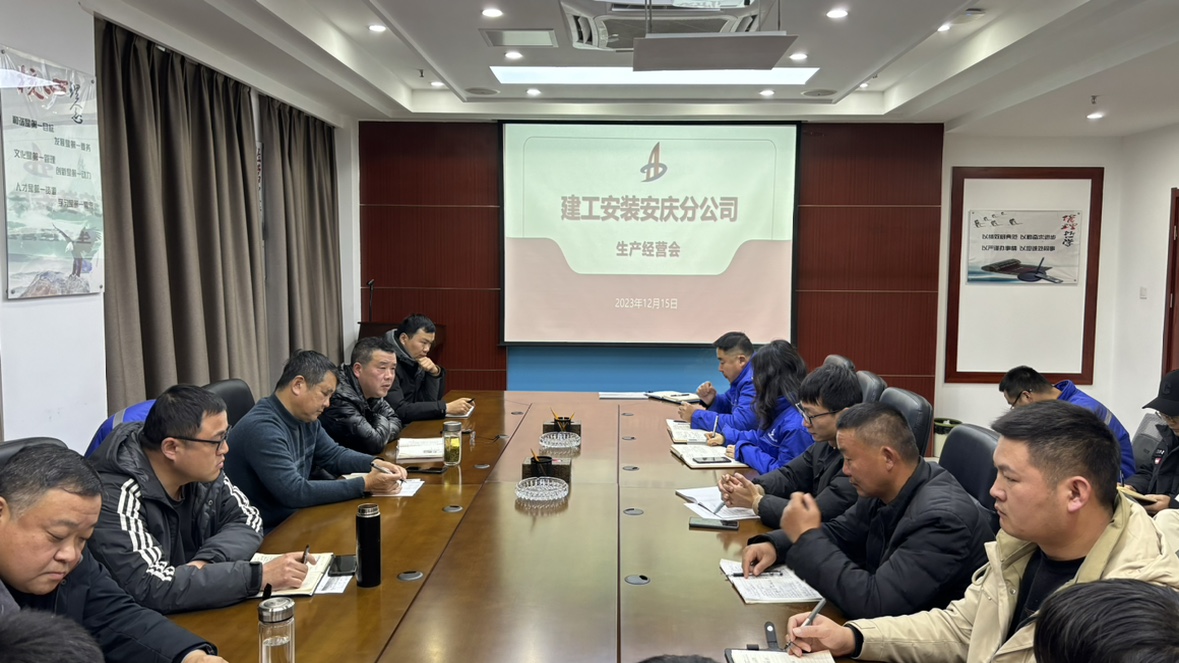 2023年12月15日,安慶分公司召開12月份生產(chǎn)經(jīng)營會,分公司領(lǐng)導(dǎo)班子、部門負(fù)責(zé)人、項目經(jīng)理及技術(shù)骨干參會,會議由分公司副經(jīng)理方斌主持。
