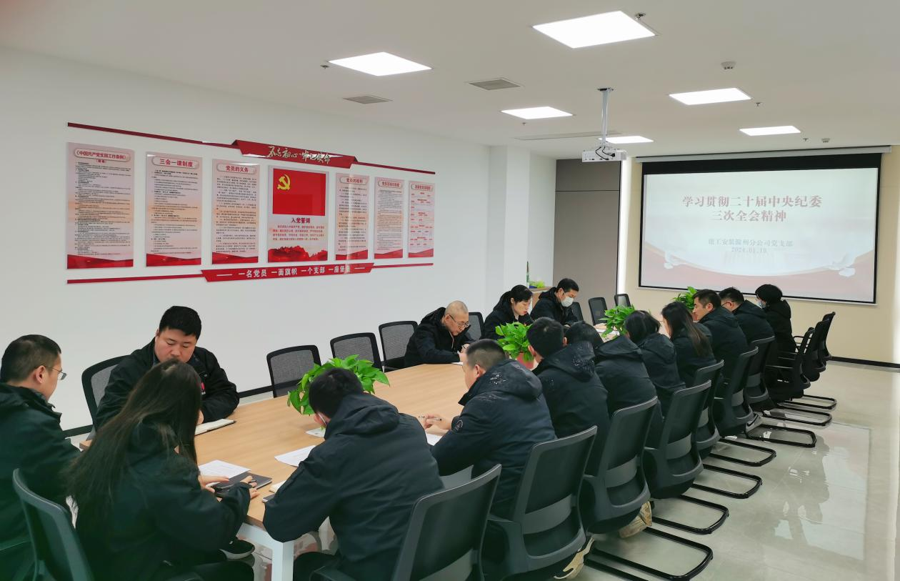 1月18日上午,建工安裝滁州分公司黨支部召開理論學(xué)習(xí)會,專題學(xué)習(xí)第二十屆中央紀(jì)委三次全會精神。分公司在滁領(lǐng)導(dǎo)班子成員、黨員、項目經(jīng)理、各部門負(fù)責(zé)人等參加會議。會議由分公司黨支部書記、副經(jīng)理程茂麗主持。