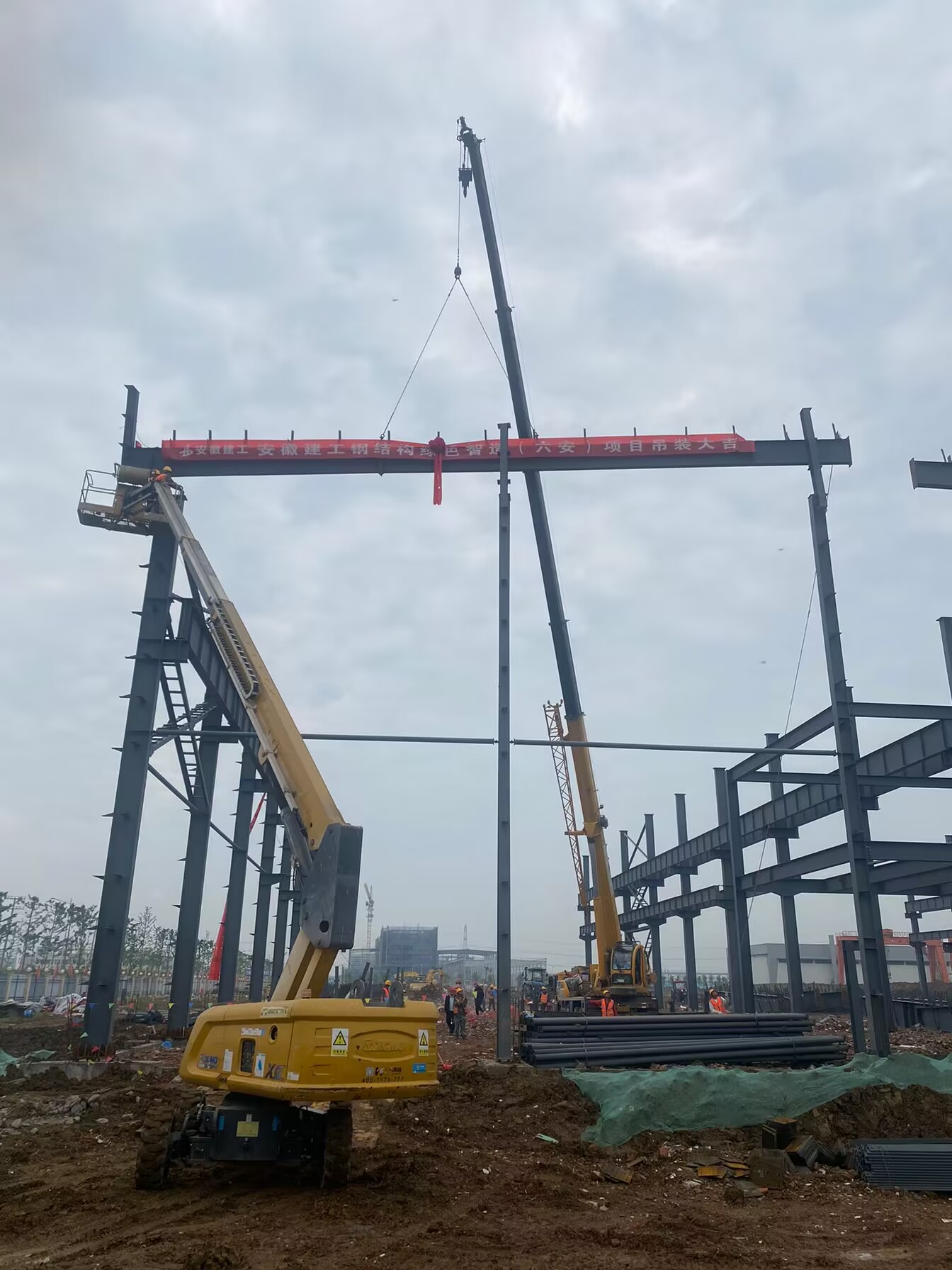5月1日上午8點(diǎn)18分,建工安裝合肥分公司安徽建工鋼結(jié)構(gòu)綠色智造(六安)項(xiàng)目順利開始“大跨度屋面梁吊裝作業(yè)”。