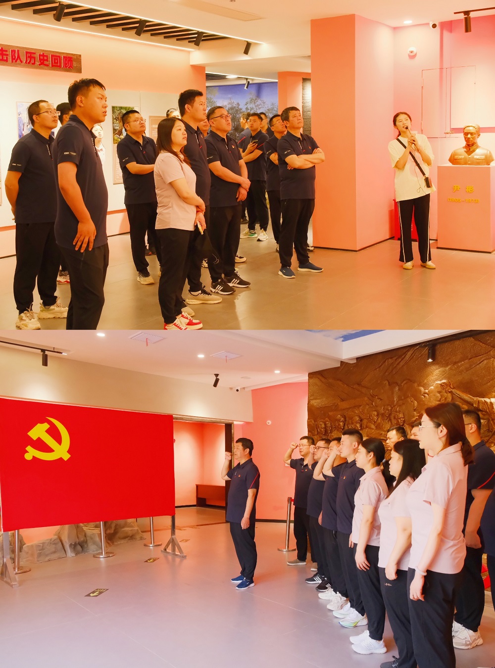 在紀念館內,通過參觀展區(qū)內陳列的各類圖片、文獻以及實物等資料,大家追尋紅色足跡,深入了解革命先輩浴血奮戰(zhàn)的革命歷史和革命精神,深情追憶老一輩共產黨人的英勇事跡,深切緬懷流血犧牲的革命先烈。參觀學習結束后,全體黨員干部在紀念館前重溫了入黨誓詞。