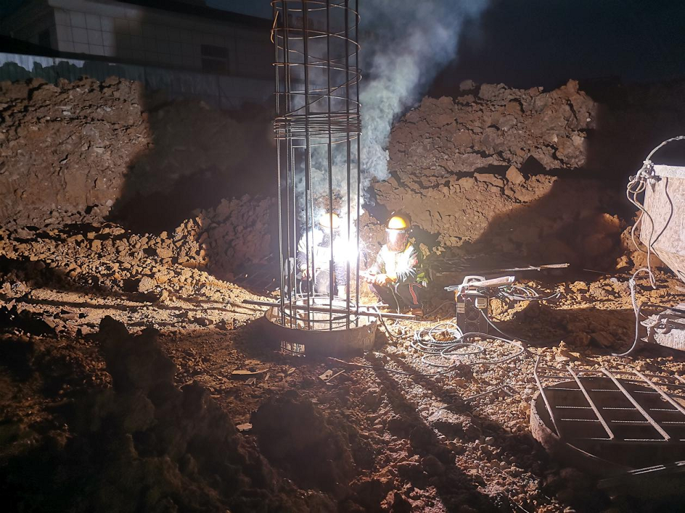 連日來,建工安裝六鋼大廈(酒店)工程施工總承包項(xiàng)目夜晚的工地現(xiàn)場(chǎng)仿佛在白晝下一般,吊車、沖擊鉆機(jī)等大型機(jī)械輪番作業(yè),運(yùn)輸車輛來回穿梭,隨處可見工人們忙碌的身影。