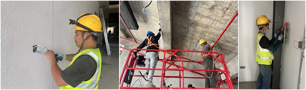 為確保9月份開學(xué)任務(wù),建工安裝合肥分公司岳西中學(xué)安裝項(xiàng)目部全體人員利用端午假期加班加點(diǎn),消防班組進(jìn)行消防報(bào)警端子箱排查線路、檢查接線,電氣班組進(jìn)行照明穿線。