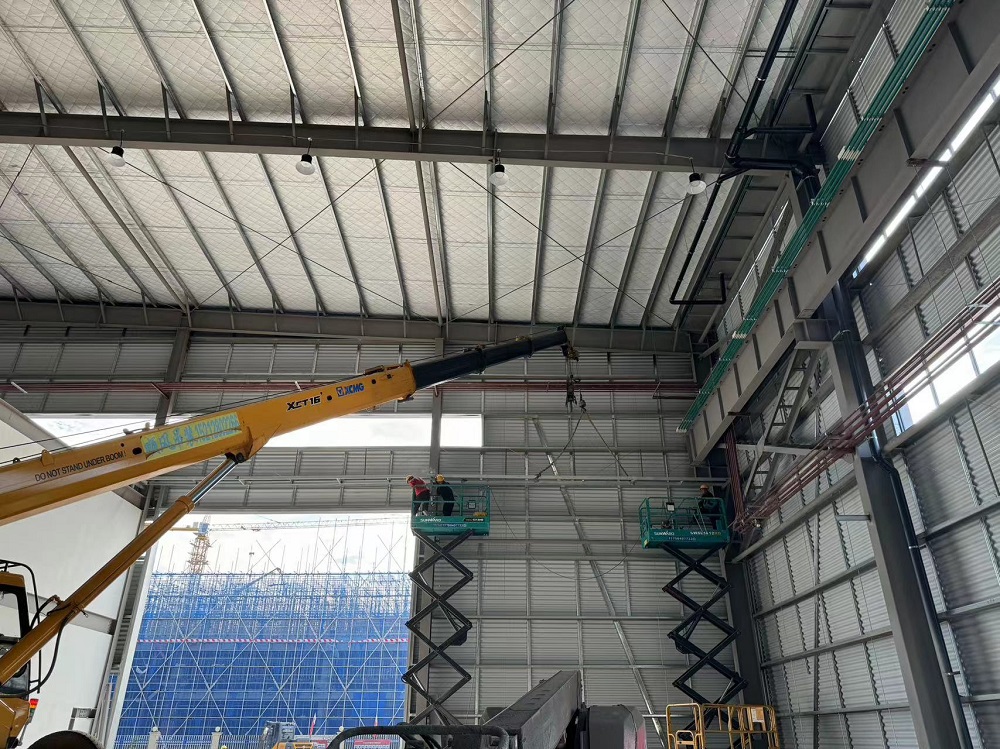目前項(xiàng)目施工現(xiàn)場(chǎng)100多名工人各司其職,進(jìn)行2#重鋼車(chē)間廠房橋架、消防系統(tǒng)、氣體管道、裝修、圍護(hù)結(jié)構(gòu)、門(mén)窗、通風(fēng)氣樓、設(shè)備基礎(chǔ)等安裝。同時(shí)為應(yīng)對(duì)持續(xù)高溫天氣,項(xiàng)目部合理安排作業(yè)時(shí)間,做好后勤保障工作,現(xiàn)場(chǎng)不間斷巡查時(shí)刻關(guān)注工人狀態(tài),在確保施工人員健康和安全的前提下,全力以赴加快廠房項(xiàng)目建設(shè)進(jìn)度,預(yù)計(jì)7月26日前完成大部分項(xiàng)目?jī)?nèi)容的施工任務(wù)。