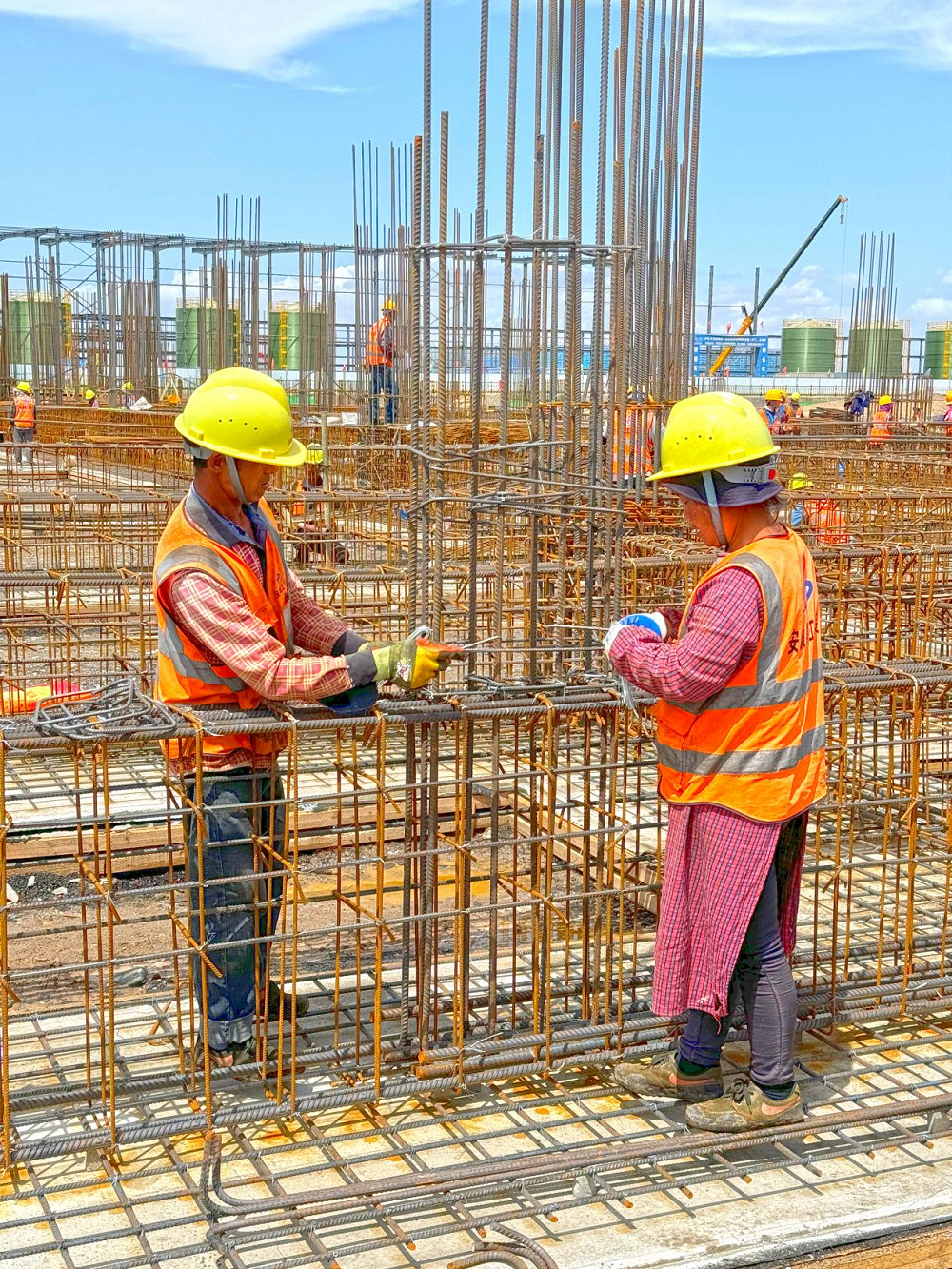 該項目施工現(xiàn)場人頭攢動,機械轟鳴,駐場技術(shù)人員頭頂烈日、靠前指揮,施工工人往來穿梭,或支設(shè)模板,或綁扎鋼筋,與夏競速,“激戰(zhàn)”正酣。項目工期緊任務(wù)重,為搶進(jìn)度、嚴(yán)安全、保工期、抓質(zhì)量,項目部嚴(yán)格制定施工進(jìn)度計劃,統(tǒng)籌安排施工人、材、機,合理高效進(jìn)場施工作業(yè),目前項目正在進(jìn)行變電所及廠房的基礎(chǔ)工程。