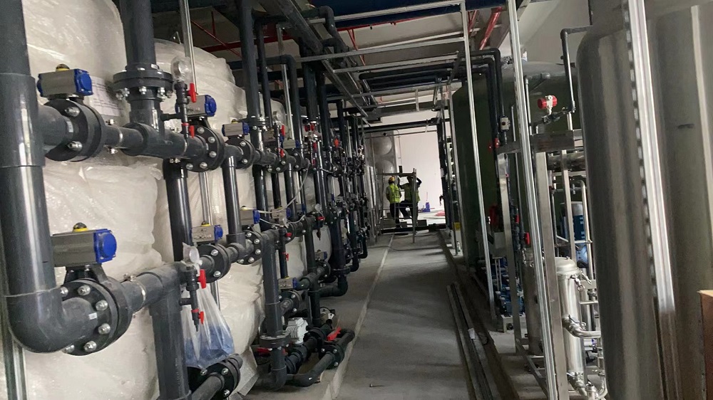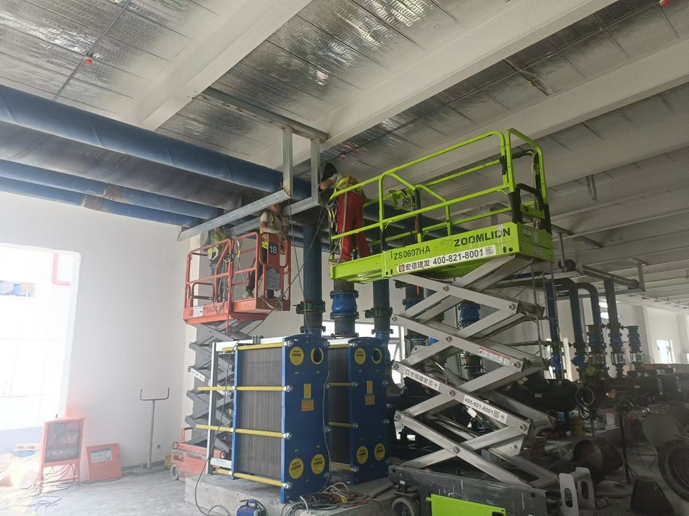 目前項目施工現(xiàn)場100多名工人各司其職,正在進行PO1廠房1-3層的水電、動力空調水、裝飾裝修、通風、保潔、保溫等相關施工作業(yè)。與此同時,頂樓冷水機房管道、屋面中溫冷水機組、冷卻塔、純水機房的安裝施工也在同步推進。