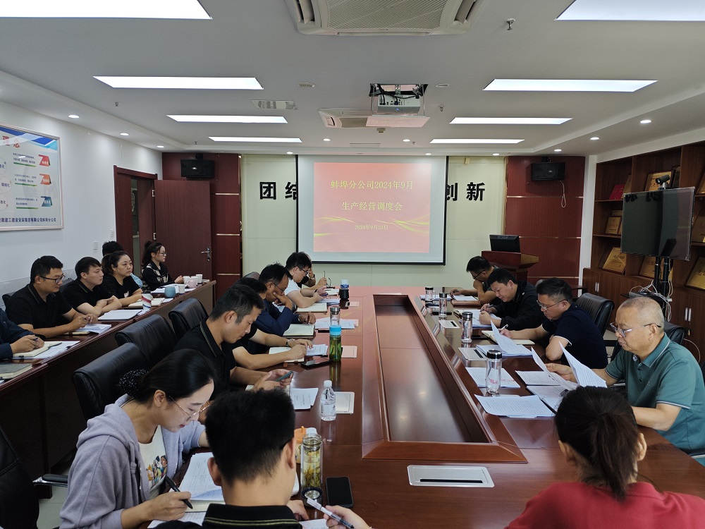 9月23日上午,蚌埠分公司組織召開(kāi)9月份生產(chǎn)經(jīng)營(yíng)調(diào)度會(huì),分公司領(lǐng)導(dǎo)班子成員、所屬各項(xiàng)目部、機(jī)關(guān)各部門負(fù)責(zé)人及工程管理部全體員工參加會(huì)議,會(huì)議由分公司副經(jīng)理張斌主持。