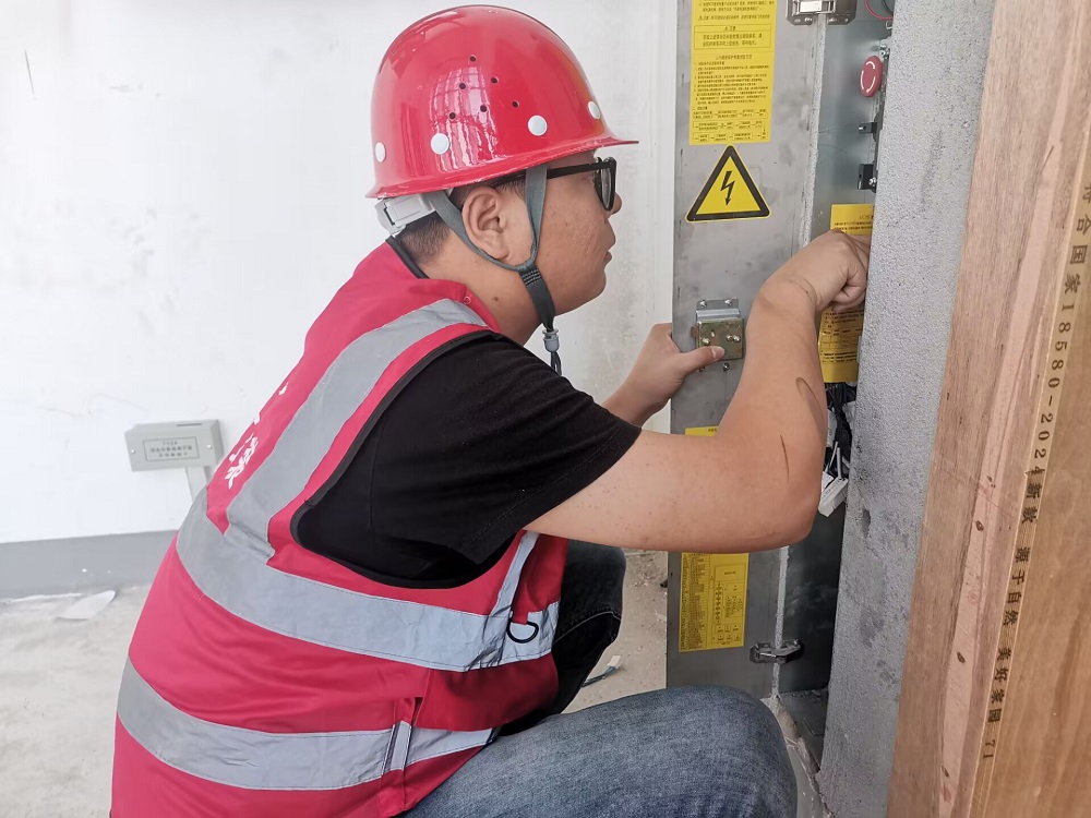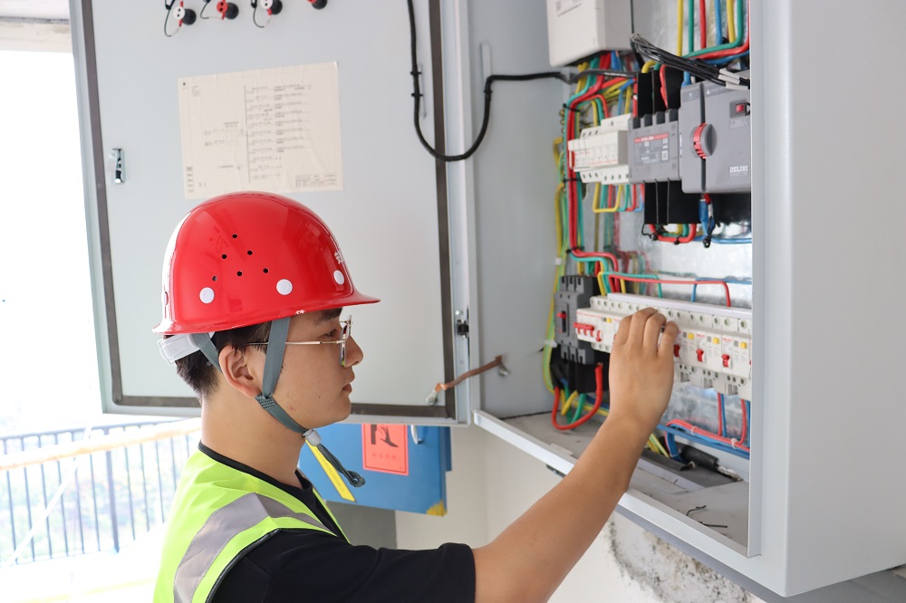 中國(guó)蚌埠傳感谷(寧波蚌埠微電子產(chǎn)業(yè)園)項(xiàng)目,技術(shù)員,鄭繼昊,正在檢查電梯控制柜操作系統(tǒng)。奮進(jìn)正當(dāng)時(shí),我為祖國(guó)建設(shè)出力,以實(shí)際行動(dòng)建設(shè)精品工程。我在項(xiàng)目堅(jiān)守,我為祖國(guó)慶生。