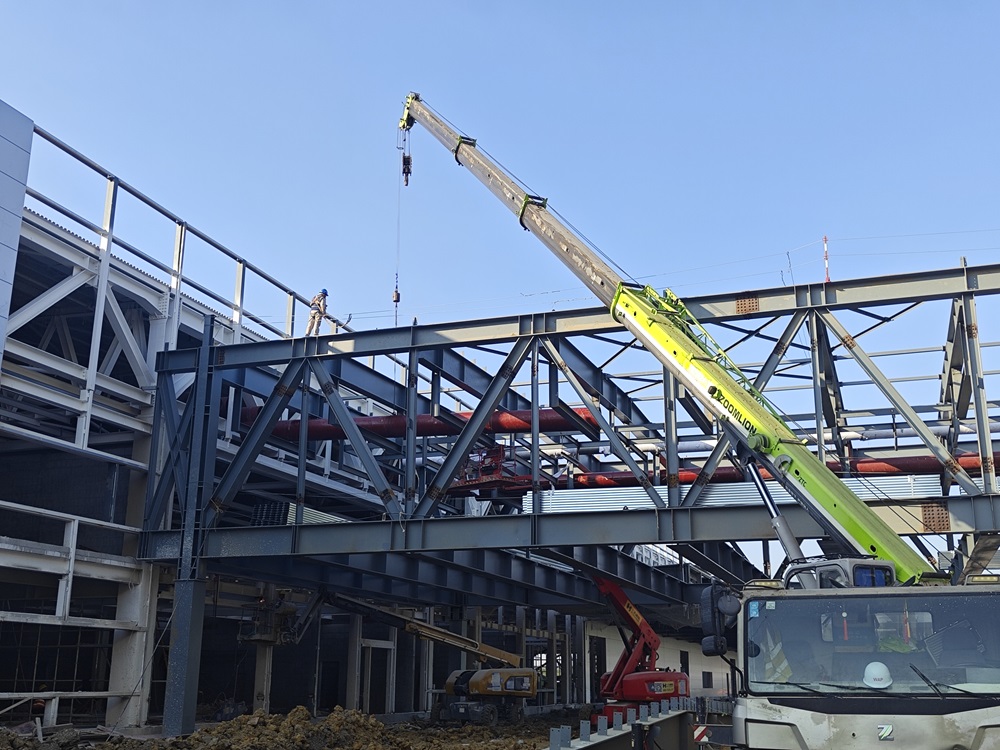 雖已立冬,天氣轉(zhuǎn)涼,但合肥新橋智能制造產(chǎn)業(yè)園一階段一標項目部戰(zhàn)鼓依然在響,施工現(xiàn)場依舊是一片奮戰(zhàn)猶酣的火熱場面。吊車揮舞著“長臂”、升降車起起落落、施工車來回穿梭、工人們忙忙碌碌,敲擊聲聲聲入耳……一切都在為確保競賽節(jié)點努力拼搏著。