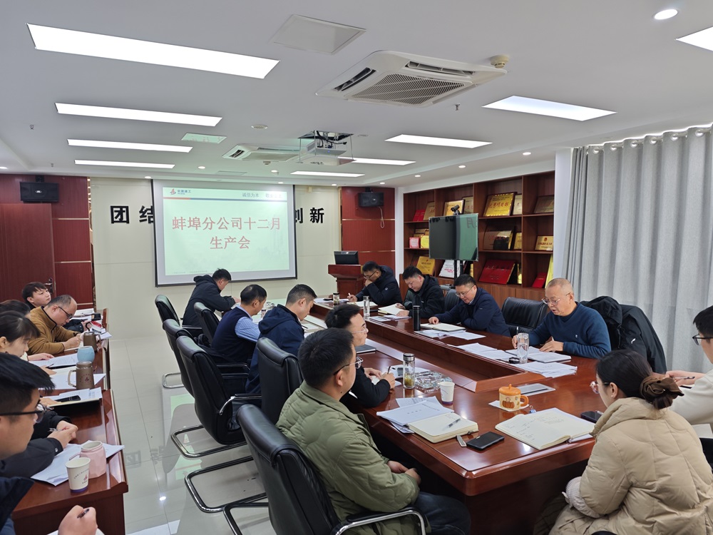 12月9日上午,建工安裝蚌埠分公司在機關會議室召開12月份生產會,分公司領導班子成員、各項目主要負責人、機關各部門負責人及工程管理部全體員工參加會議,會議由分公司副經理張斌主持。