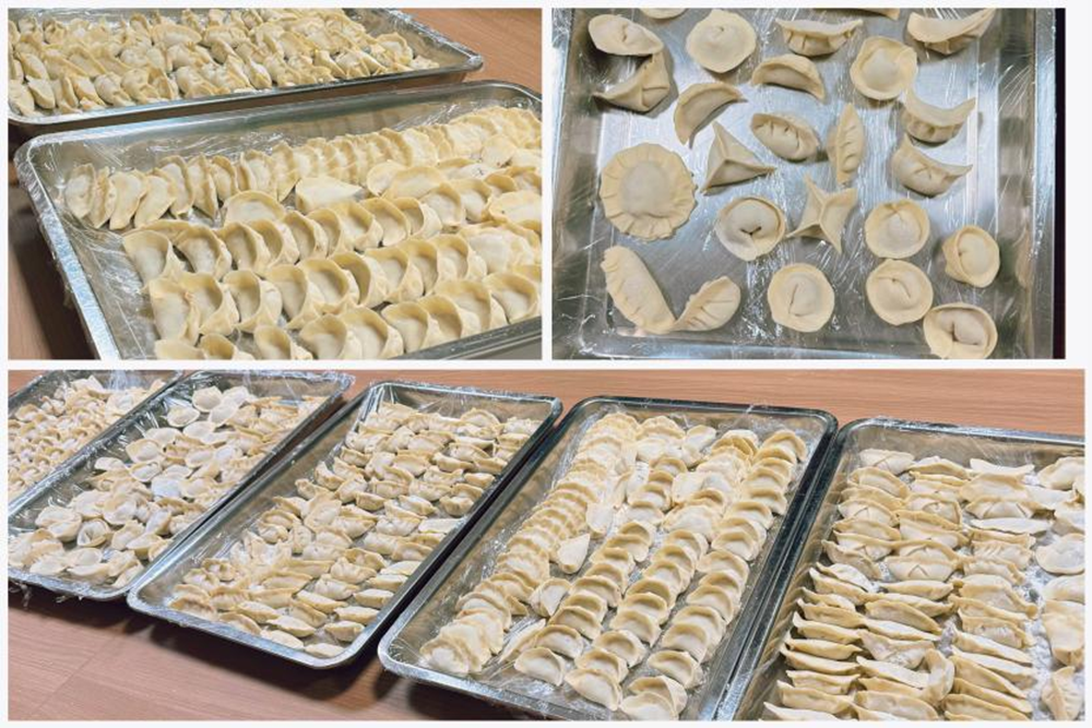 在分公司機(jī)關(guān),會(huì)議室的長(zhǎng)桌上擺滿了各種食材和工具,有新鮮的餃子皮、美味的餡料、筷子、勺等。大家配合默契,歡聲笑語不斷,新手們?cè)谟薪?jīng)驗(yàn)的同事指導(dǎo)下,逐漸掌握了包餃子的技巧,雖然動(dòng)作還有些生疏,但熱情絲毫不減。不一會(huì)兒,一個(gè)個(gè)形態(tài)飽滿的餃子就擺滿了托盤,有傳統(tǒng)的月牙形餃子,也有創(chuàng)意十足的花朵形、元寶形餃子。