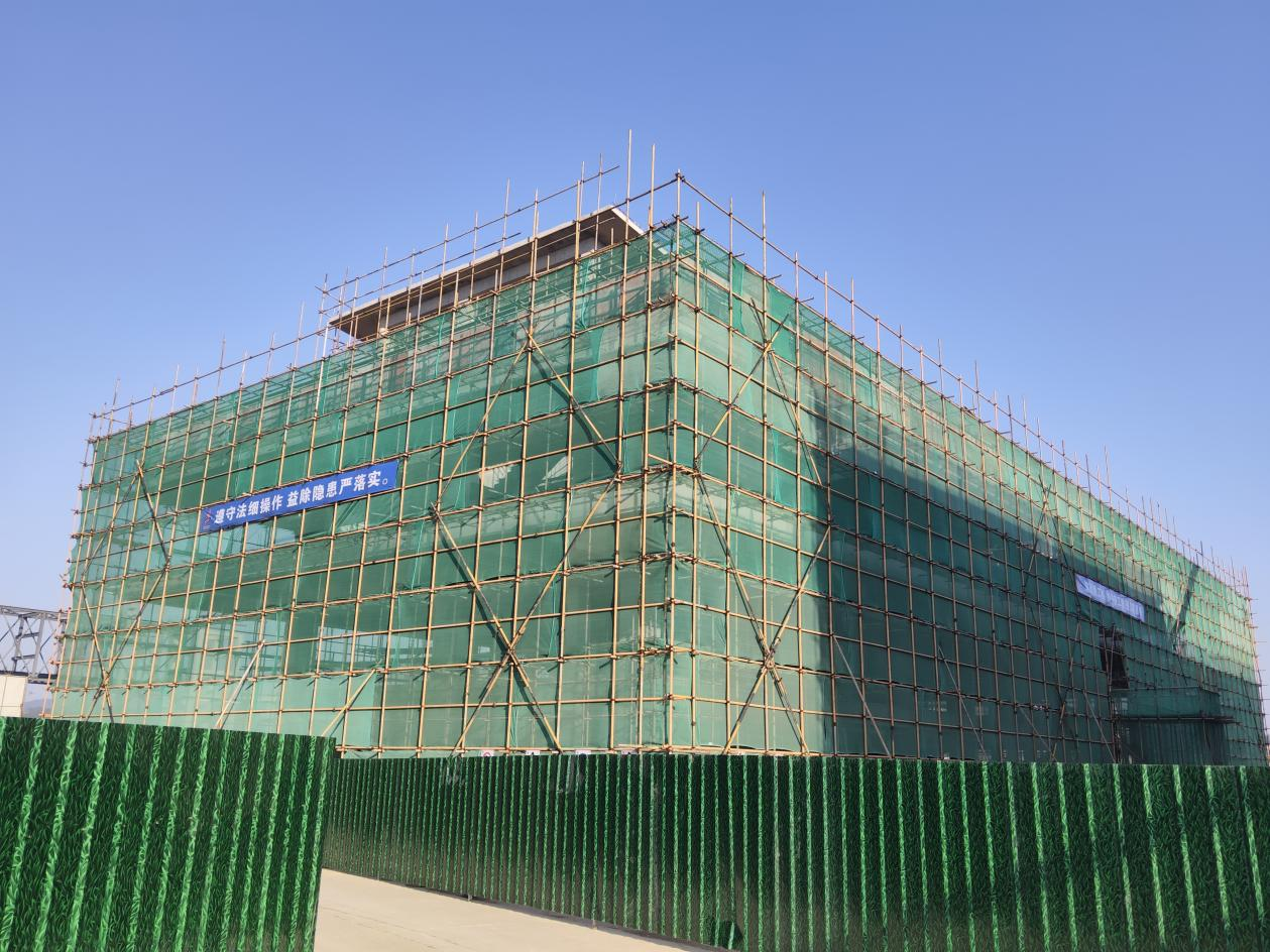 辦公樓外架施工完成,準(zhǔn)備進(jìn)行砌筑作業(yè)
