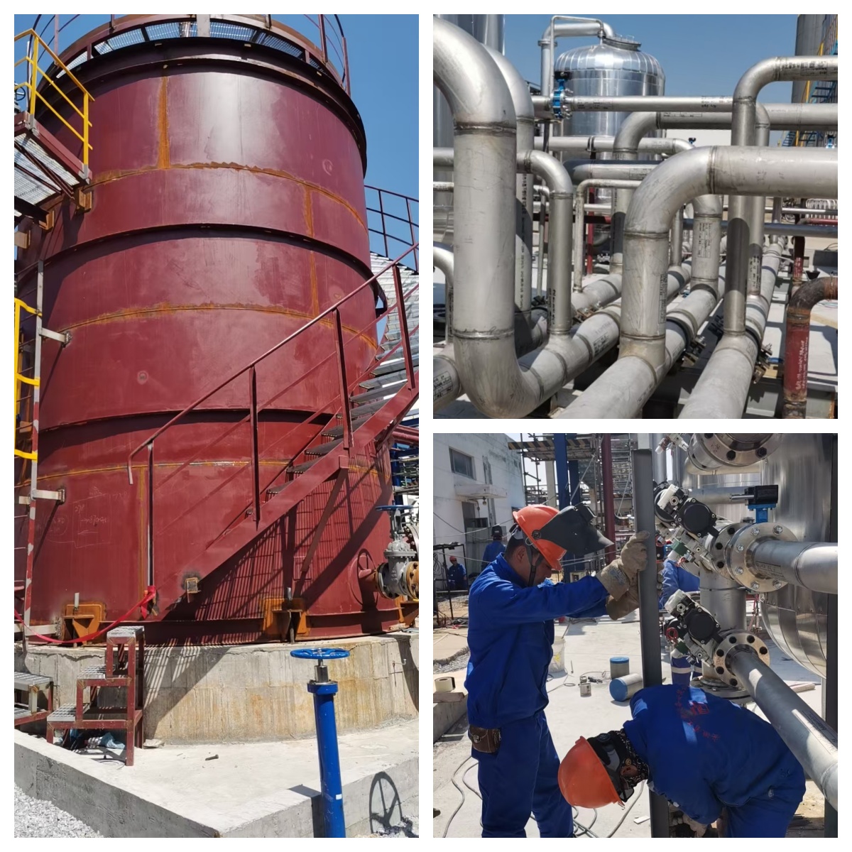 面對(duì)重重挑戰(zhàn),土建、安裝、電儀等各專業(yè)在有限的施工區(qū)域和緊張的工期內(nèi)緊密協(xié)作,加班加點(diǎn),全力確保項(xiàng)目按期交付。安裝專業(yè)任務(wù)繁重,需現(xiàn)場(chǎng)制作1座120立方米儲(chǔ)罐,安裝4臺(tái)除鐵過濾器、3臺(tái)精密過濾器、3排管廊架以及2臺(tái)提升泵。此外,還需鋪設(shè)350米各規(guī)格(DN200、DN150、DN100等)的不銹鋼工藝管道和250米碳鋼管道。土建專業(yè)主要負(fù)責(zé)廢水輸送泵、廢水收集罐、精密過濾器、除鐵反應(yīng)器設(shè)備及配套管架基礎(chǔ)的建設(shè),以及后期地坪的恢復(fù)。電儀專業(yè)則需完成20千米電纜敷設(shè),安裝2臺(tái)機(jī)柜、2臺(tái)操作臺(tái)、1套控制儀表設(shè)備和1套除鐵成套裝置儀表,同時(shí)完成2千米配管和200米槽盒的安裝調(diào)試工作。